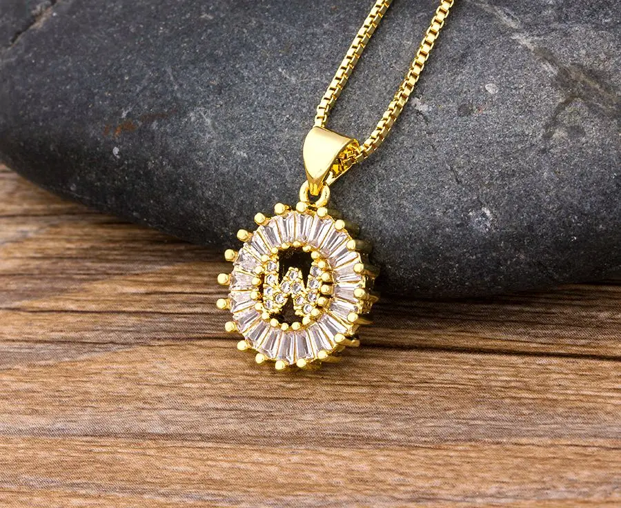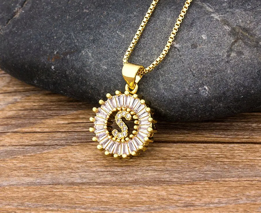 Горячая Распродажа 26 шт.лот оптовая продажа A-Z начальной буквы ожерелье цвета: золотистый, серебристый цвет форме плетённого кольца CZ кристалл кулон имя, ювелирное изделие, подарок