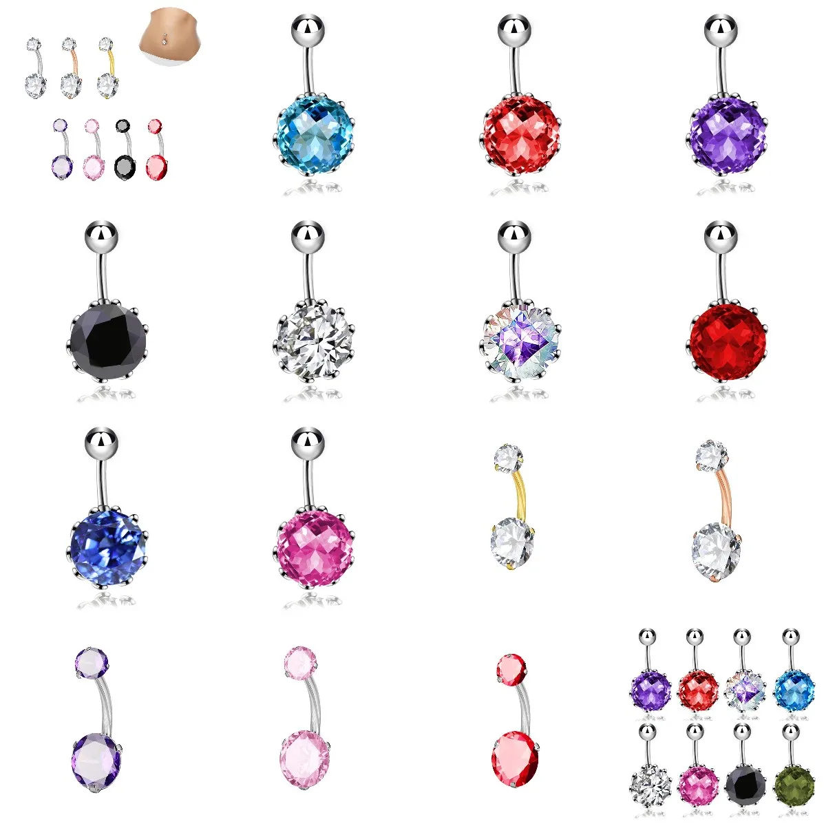 Женское кольцо для пупка с кристаллами, 1 шт.