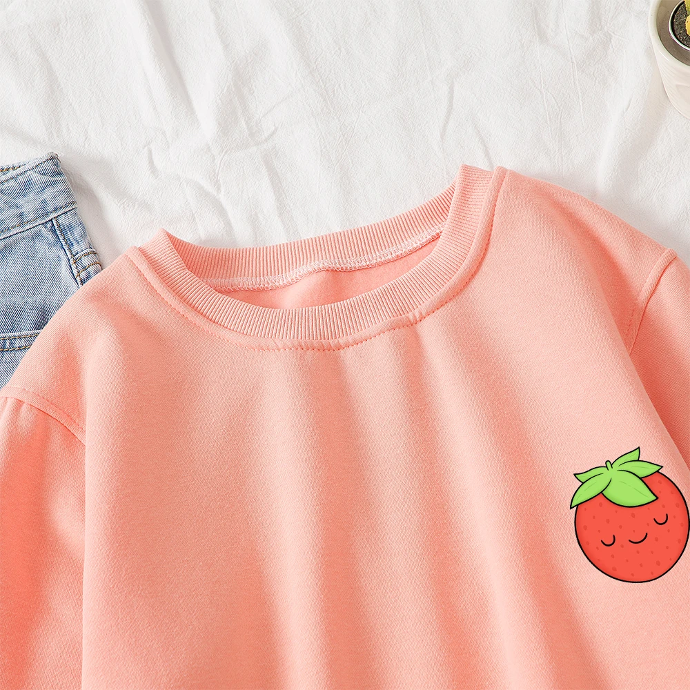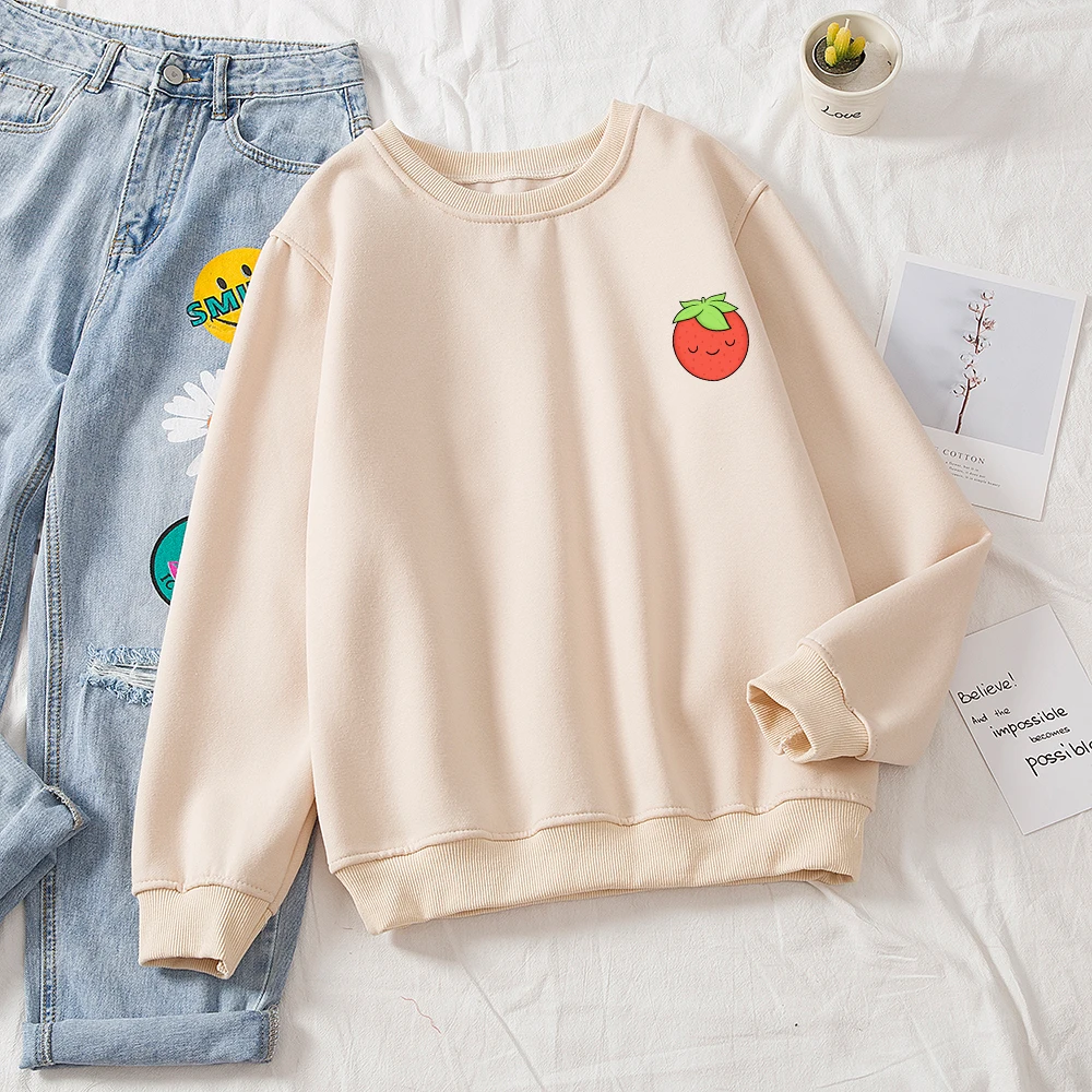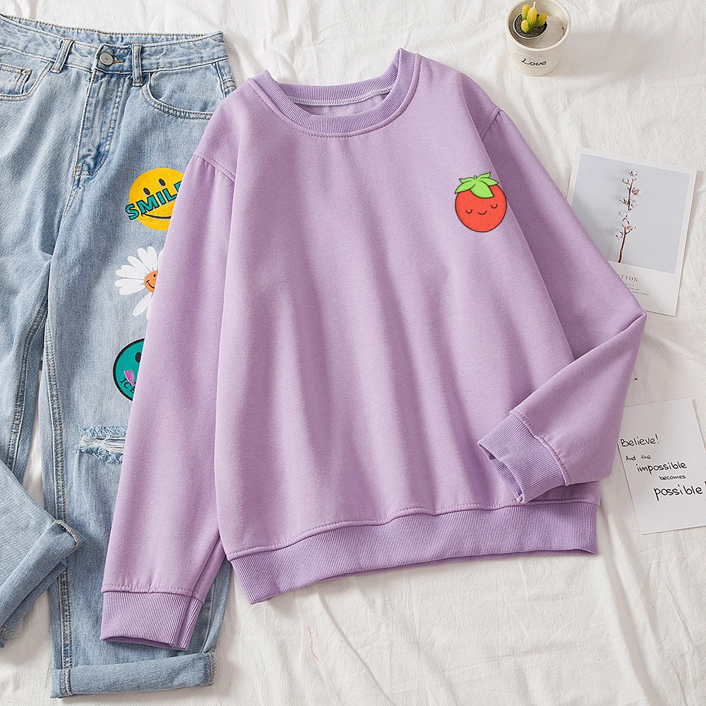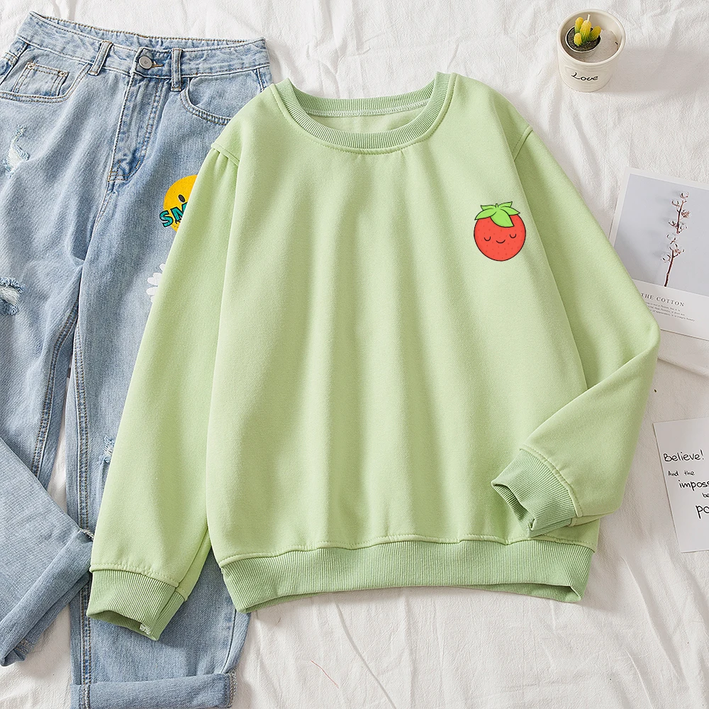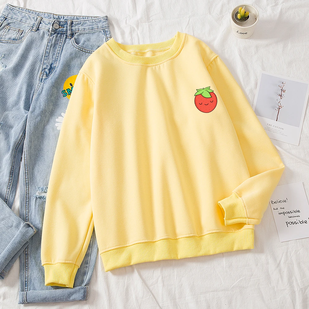 Милая Женская толстовка в стиле гранж клубника, худи в эстетике, пуловеры с длинным рукавом и круглым вырезом, хлопковые корейские толстовки для девушек