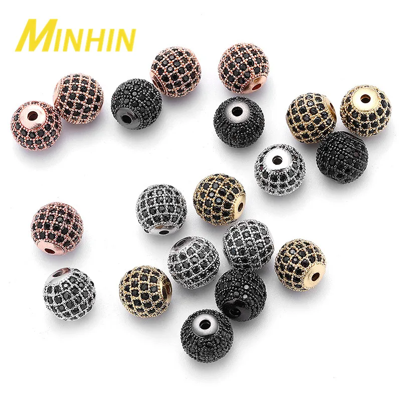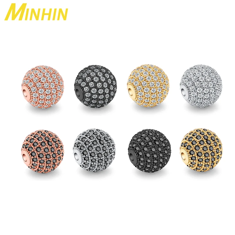 MINHIN 3 шт.лот 10 мм12 мм Роскошные циркониевые разделительные бусины с микрозакрепкой для самодельных ювелирных изделий, круглые шарики в форме шармов для изготовления браслетов