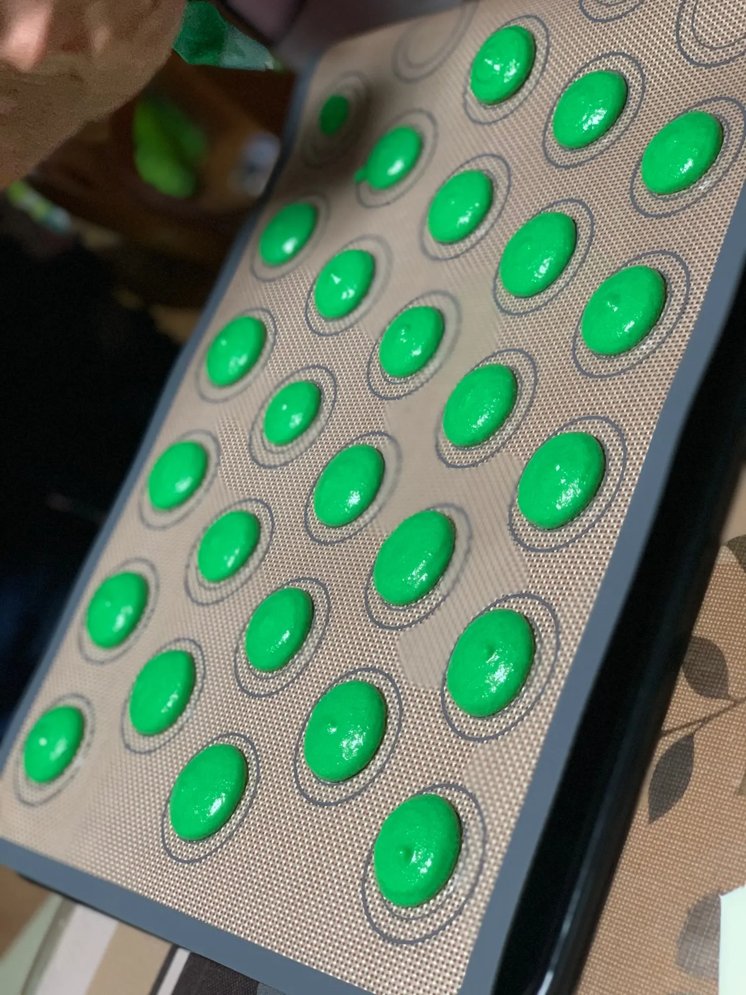 Возможно, вам придется испечь коврики перед использованием. Поможет с ростом макарон