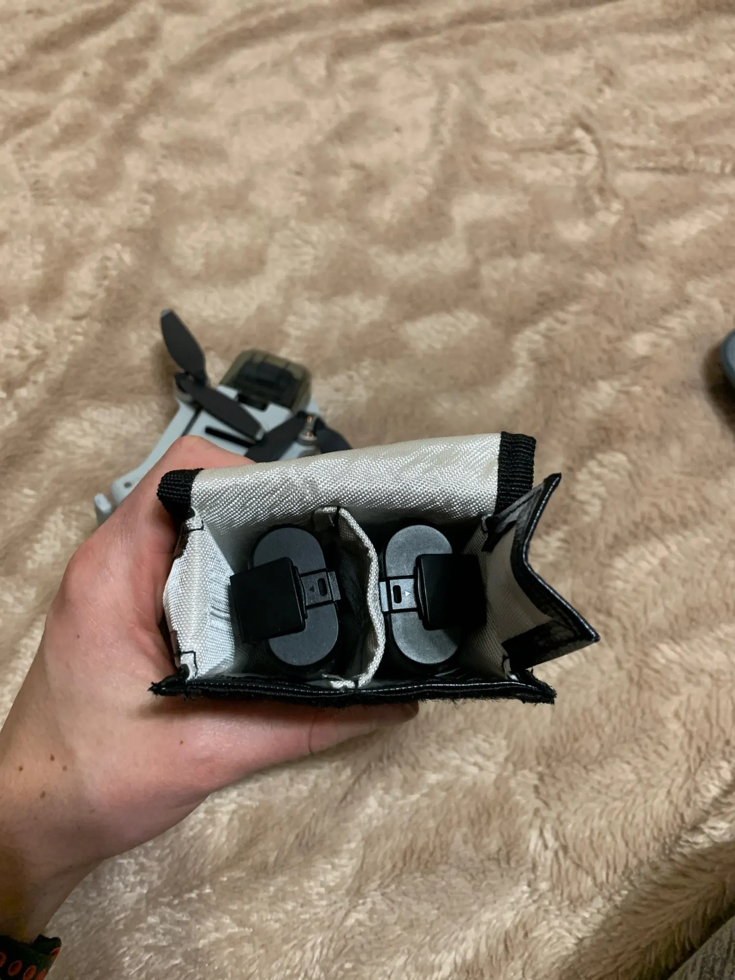 Сумка подходит для фотографии, хорошо в хорошем состоянии и упаковка в целости и сохранности. Идеально подходит для всех 3 батарей в нем без каких-либо проблем, материал выглядит хорошо, и в случае, если Дрон подходит к сумке, если мы Вынимаем зарядное устройство из батарей.