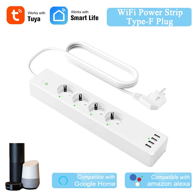 Умная WiFi полоса питания Tuya Smart App Control Type-F 4 выхода 4 порта USB индивидуально управляемый Alexa Google Home совместимый