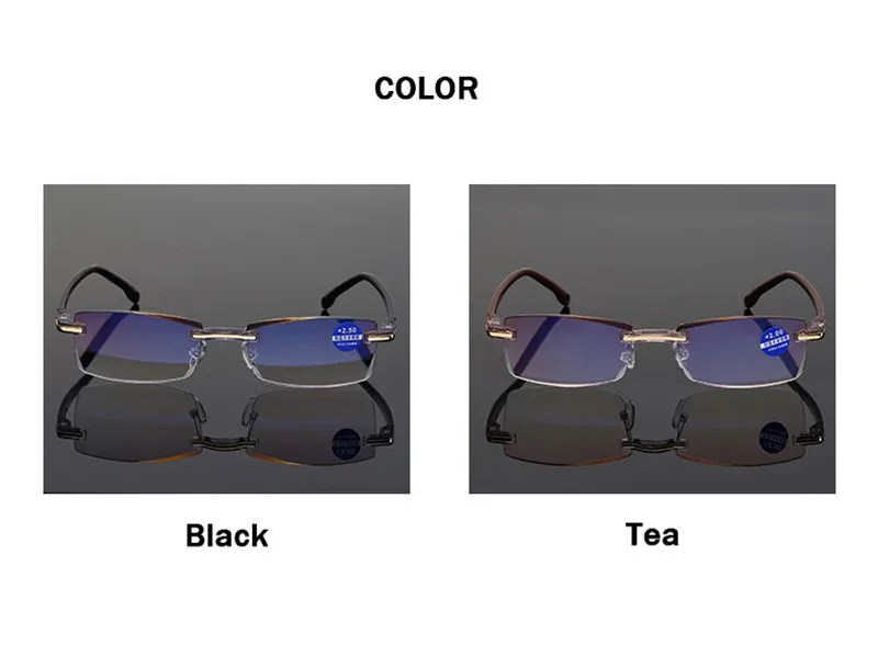 Очки для чтения без оправы B.I с защитой от сисветильник, для мужчин и женщин, квадратные безрамные пресбиопические очки с диоптриями + 1,0 1,5 2 2,5 4,0