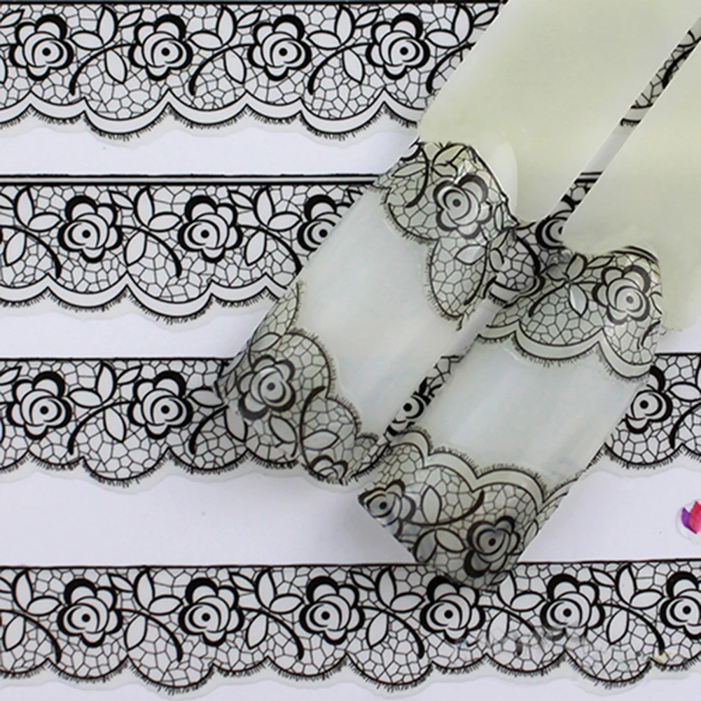 Модные черные розы, кружевные наклейки для дизайна ногтей, наклейки на пальцы, декор для маникюра