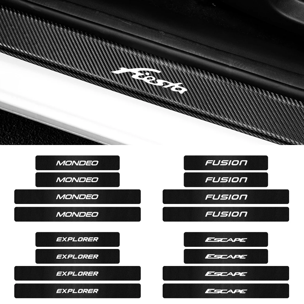 Стайлинг автомобиля 3D углеродное волокно Защитная Наклейка на порог автомобиля Наклейка для Ford логотип ST Focus Fiesta Ecosport Mondeo Escape Shelby