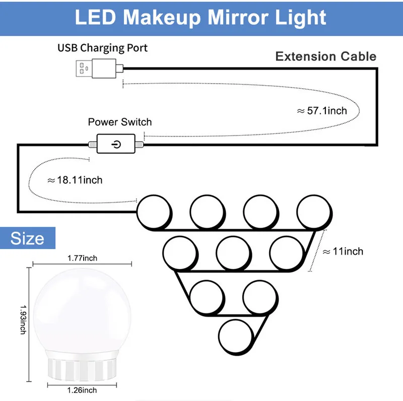 Вам не нужны инженерные знания, прежде чем вы сможете закрепить этот набор. Наш светодиодный светильник vanity mirror чрезвычайно прост, прост и удобен в установке. Эти лампы хорошо разработаны с супер сильным клеем, чтобы правильно держать его приклеенным к зеркалу для макияжа. Вы можете сделать макияж быстрее с этими яркими огнями!