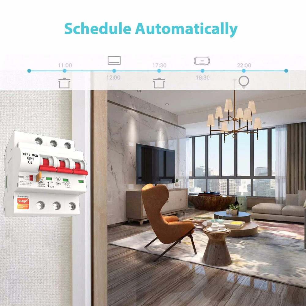 Автоматический выключатель Tuya, умный автоматический выключатель с поддержкой Wi-Fi, 3P, 16A-125A, работает с приложением Alexa Tuya Smart MCB