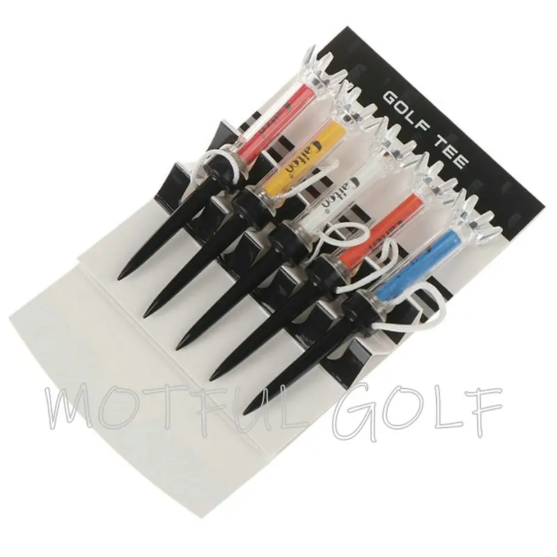 Особенности:5 шт. тройников для гольфа разных цветов.Угол обзора 360 °.Магнитная связь между головкой и валом.С веревкой, чтобы предотвратить вылет головы при ударе по мячу.Уменьшает сопротивление и увеличивает расстояние мяча.Красивый и многоразовый, отличный аксессуар для тренировок в гольф.Характеристики:Материал: полипропиленДлина: 79 мм/90 мм (опционально)Вес: 5g (1 шт.)Количество: 5 шт.Размер посылка: 14*9,5*1,6 см/5,5*3,7 * 0.6inВес посылка: прибл. 30 г/1,0 унцийПосылка:5 * тенниска для гольфа