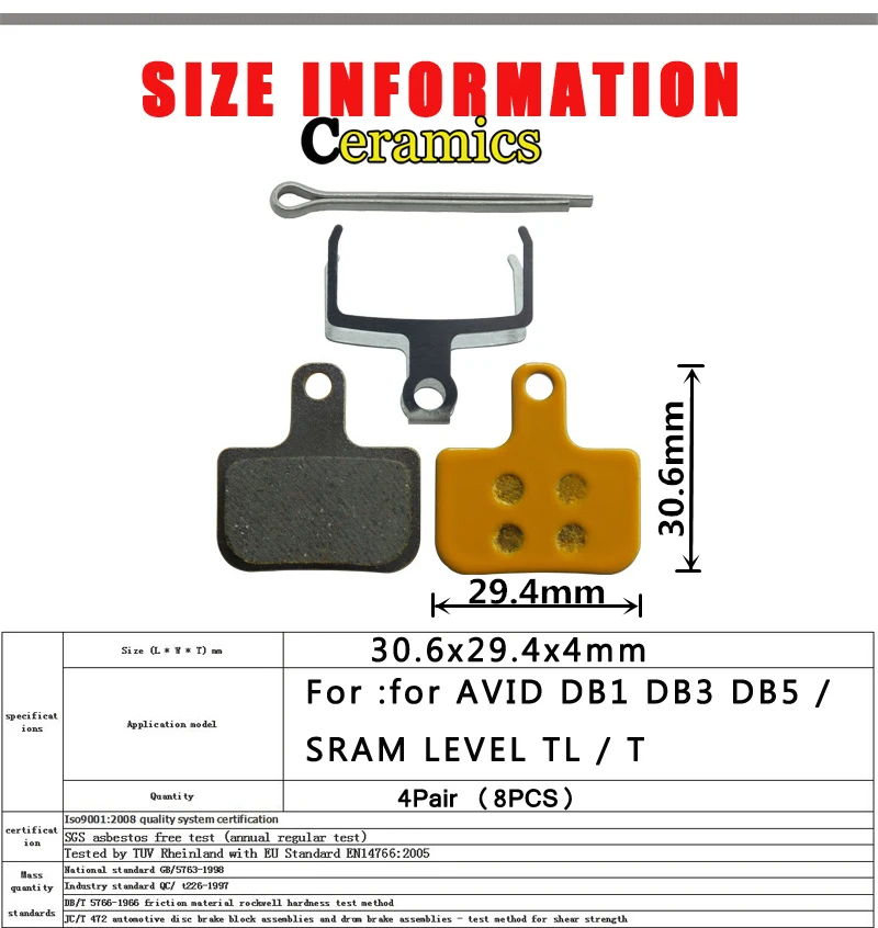 4 пары керамических дисковых тормозных колодок MTB для горного велосипеда для SRAM AVID DB1 DB3 DB5 уровень TLT Запчасти Аксессуары