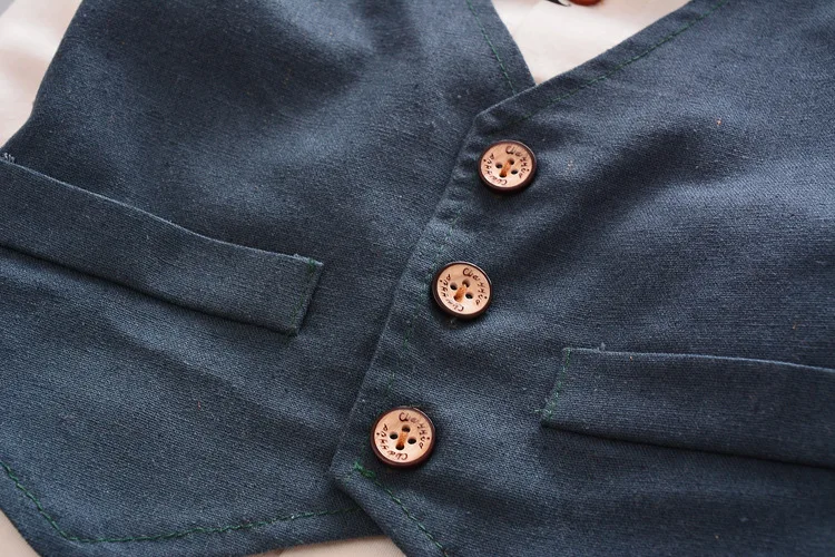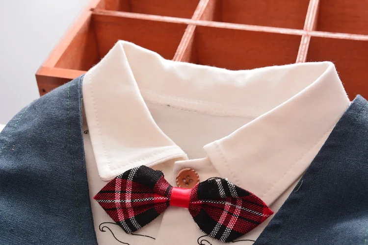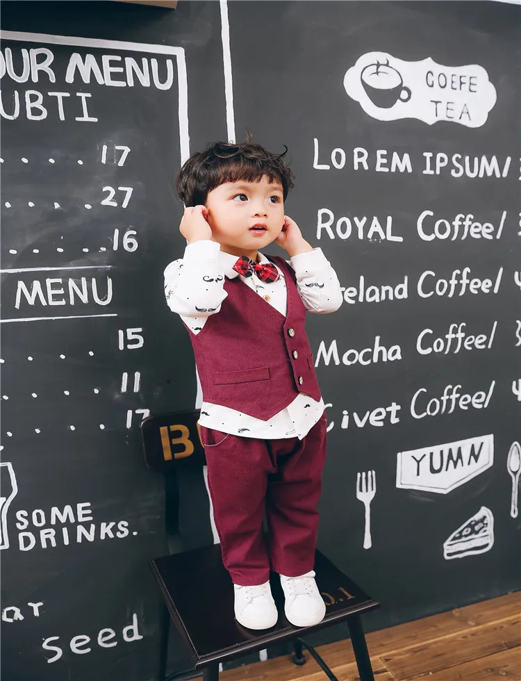 Одежда для маленьких мальчиков в джентльменском стиле костюм из хлопковой рубашки и платья, комплект из трех предметов на свадьбу Платья для младенцев вечеринка для мальчика день рождение костюм платье без рукавов костюм