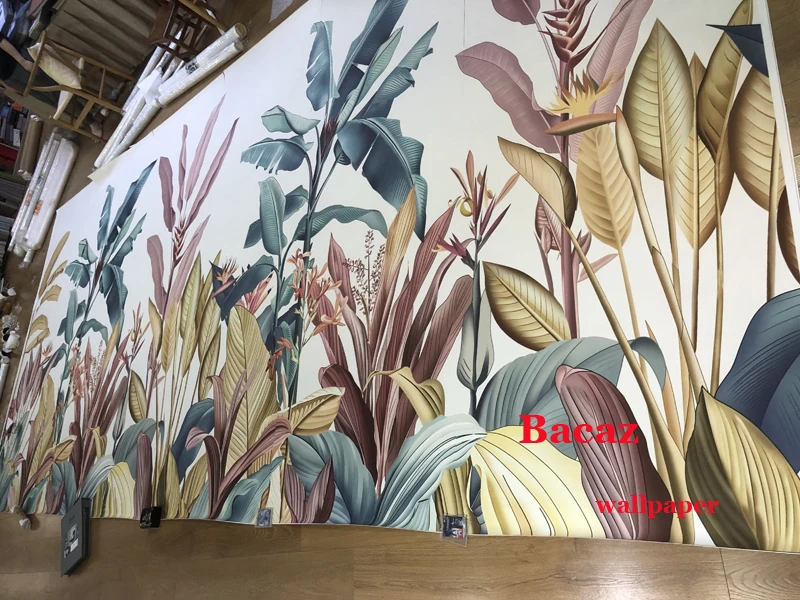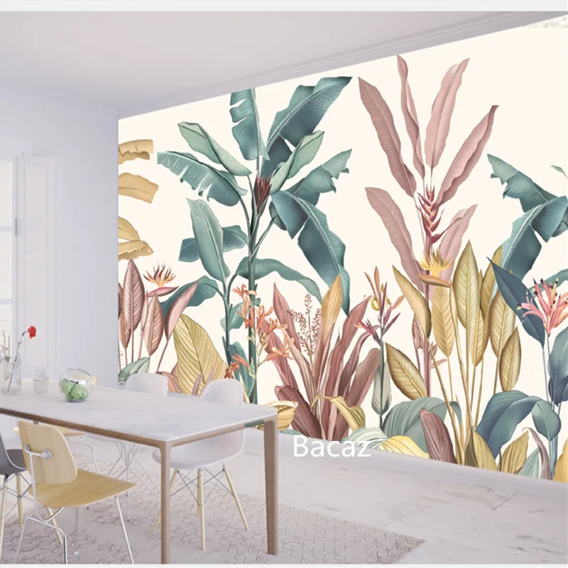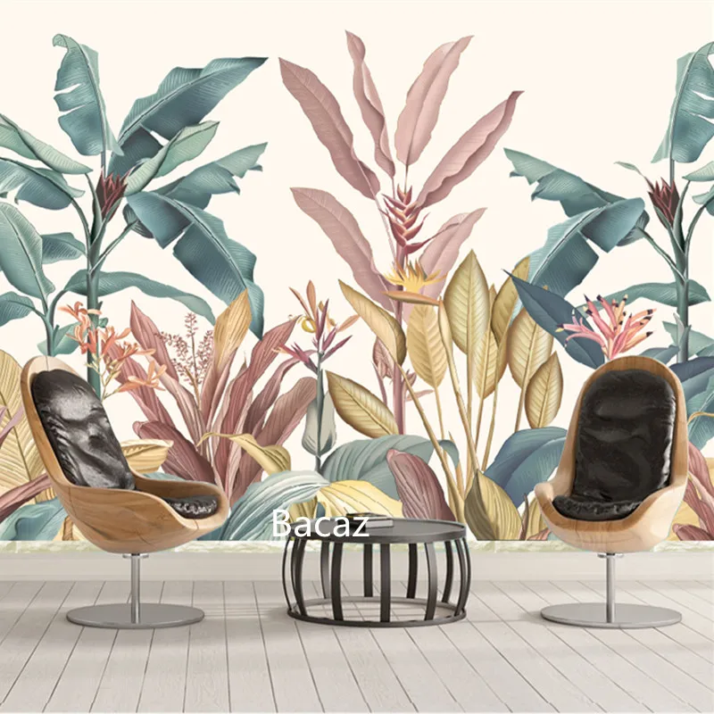 Настенные 3d обои Bacaz с изображением банановых листьев, холст, тропический лес, растения, Декор для дома