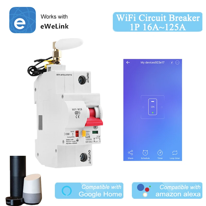 Умный автоматический выключатель EWeLink WiFi 1P для умного дома, защита от короткого замыкания MCB, работа с Amazon Alexa Google Home