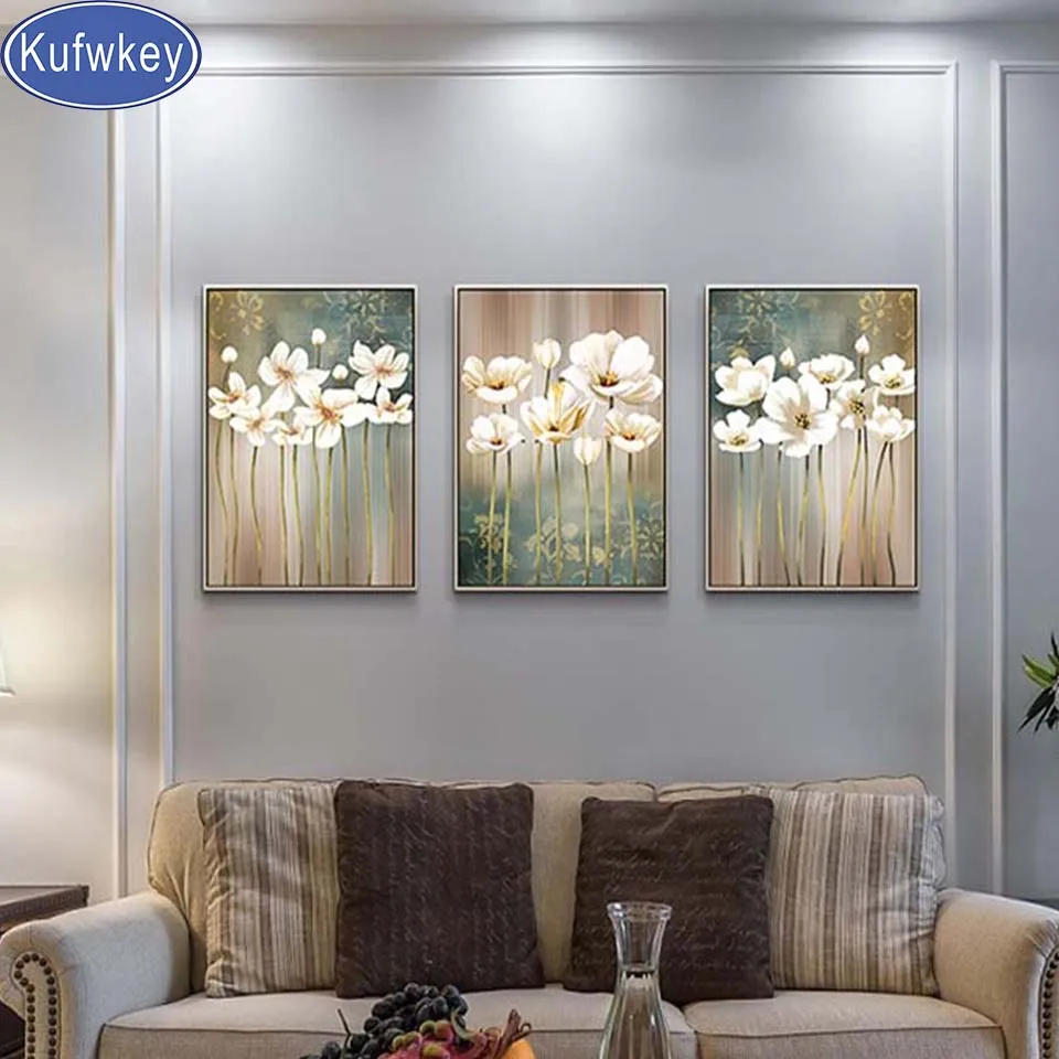 Комплект из 3 предметов, белые орхидеи, цветы, полная квадратная круглая 5d картина «сделай сам», алмазная вышивка, цветок, Алмазная мозаика, Триптих,