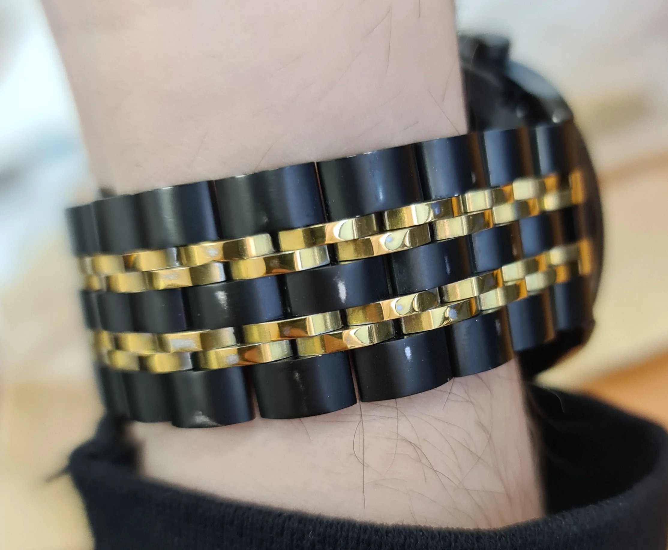 Страна: UK Band Color: Black gold Ships From: CN Band Width: 22mm Доставка: Standard Shipping 26.01.2021