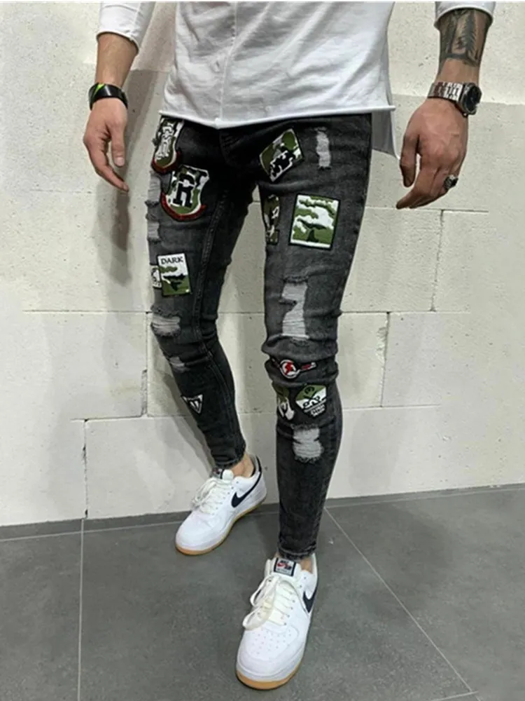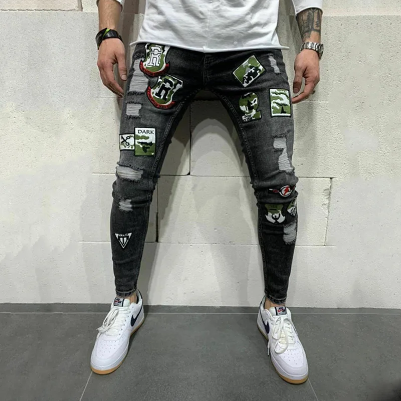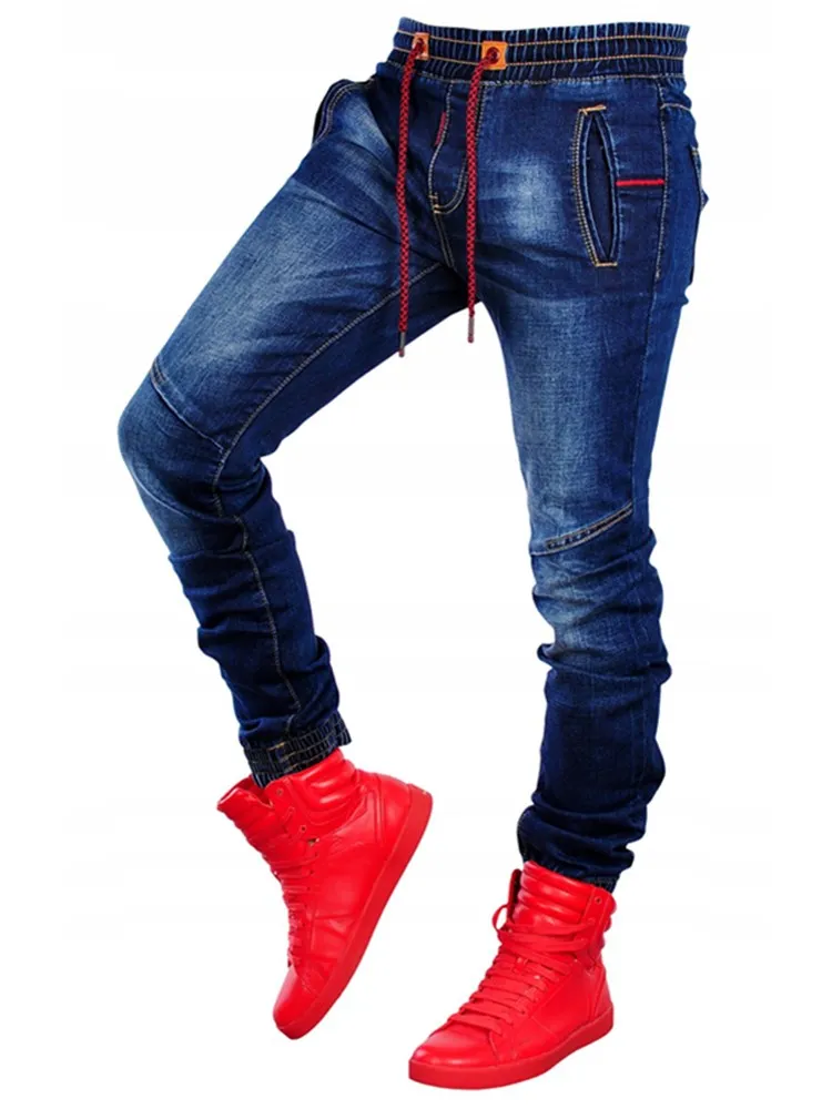 Джинсы мужские однотонные, тонкие брюки-скинни, эластичные длинные брюки-карандаш, для бега