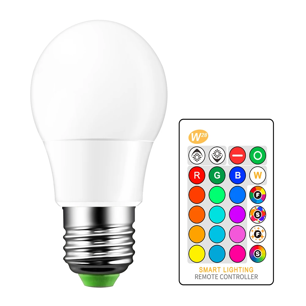 Светодиодная RGB-лампа E27, 10 Вт, 110 В, 220 В, 85-265 в, 16 цветов
