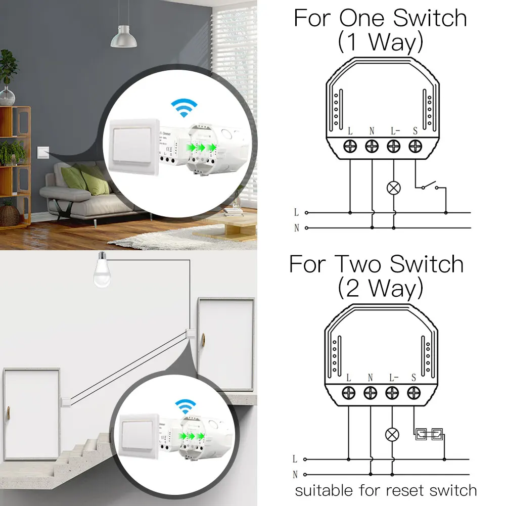 0%-100% затемнения: Регулировка яркости через голосовой помощник, как Amazon Alexa Google Home или ваш мобильный телефон Управление Wi-Fi через ваш мобильный телефон 2,4G Networks обеспечивает необходимое подключение к модулю диммера DIY без необходимости отдельного концентратора. Использует популярное приложение smart life/Tuya на базе android / ios, универсальное приложение позволяет полностью контролировать ваши огни или совместимые устройства. Несколько вариантов программы позволяют спланировать точное время для включения света. Включение/выключение автоматически. Дайте вашим устройствам максимальную мощность вкл/выкл умный макияж, просто подключите этот модуль Do-It-Yourself между вашим устройством и источником питания, чтобы конвертировать большинство любых совместимыхПродукт к aУмный.