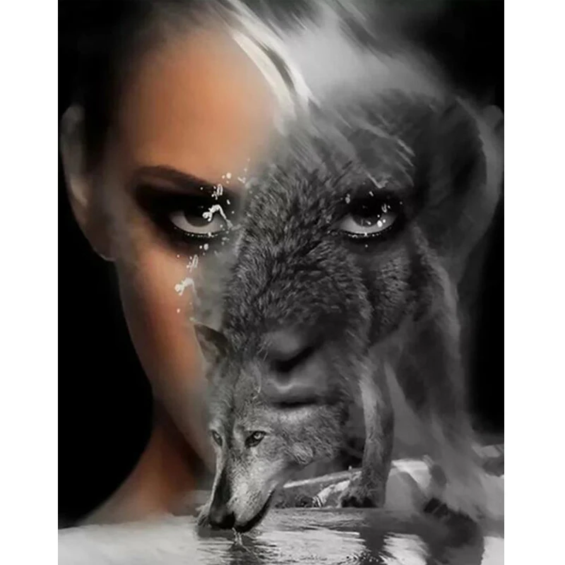 Стразы Бриллиантовая вышивка Фэнтези Волчонок, женское лицо, полностью квадратное круглое алмазное украшение, Набор для вышивки крестиком, Настенная картина, Набор для вышивки крестом, для украшения на стену, для рукоделия