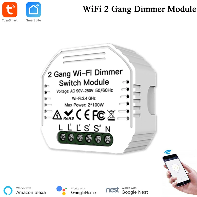 Умный светодиодный диммер, модуль переключателя, 2 клавиши, Wi-Fi, управление через приложение, совместим с Alexa Google Nest