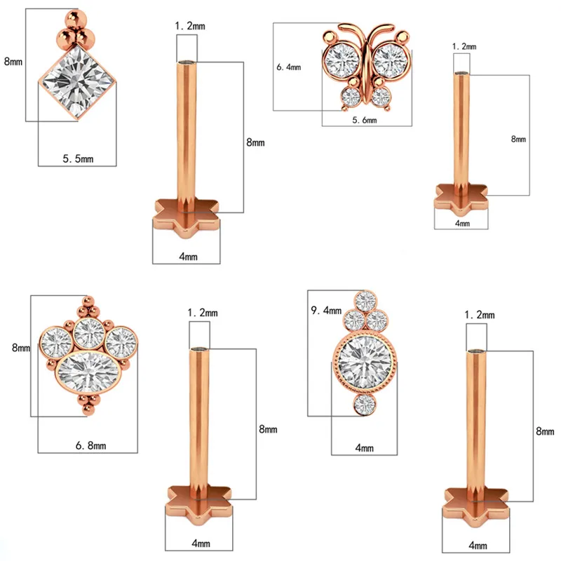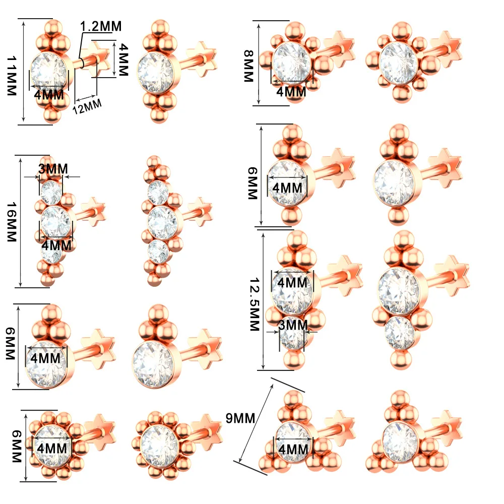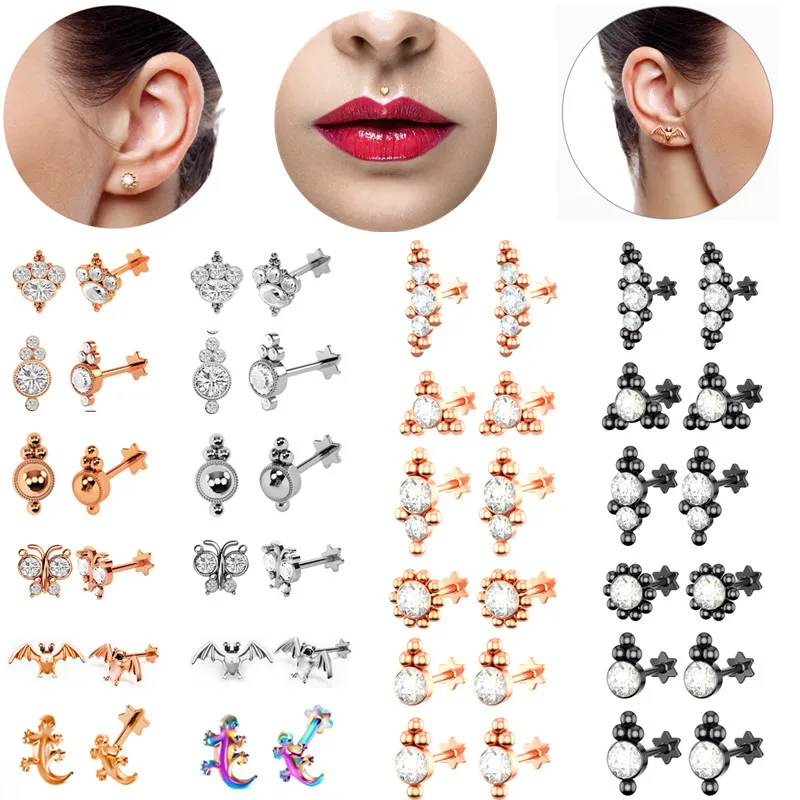 Кристальные вертикальные пирсинг Лабрет много цветок Хрящ Пирсинг Серьги Козелок Helix Daith пирсинг серьги губная серьга-гвоздик кольцо для губ