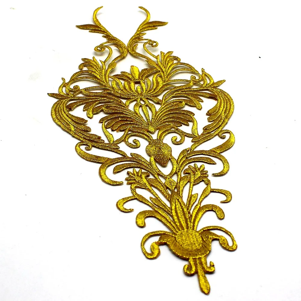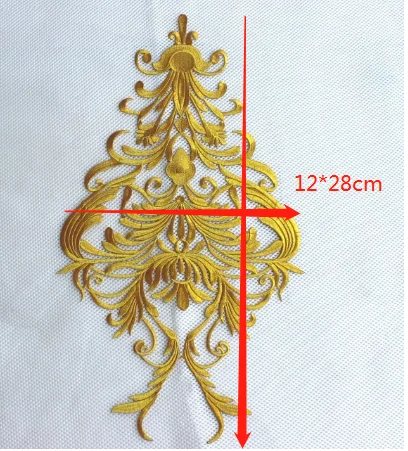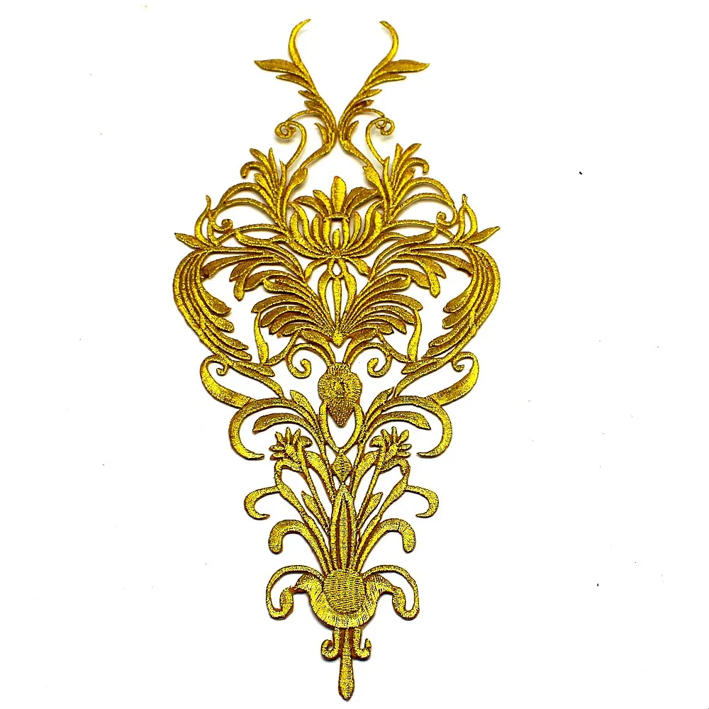 Аппликация для одежды с помощью утюга, нашивки с золотой вышивкой и цветами, 12 см * 28 см