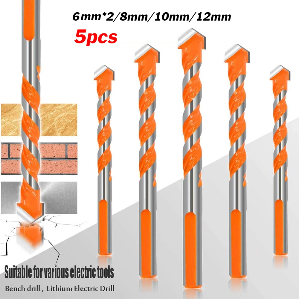 Набор треугольных многофункциональных сверл для плитки, бетона, кирпича, стекла, пластика и дерева, 6, 6, 8, 10, 12 мм, 5 шт.