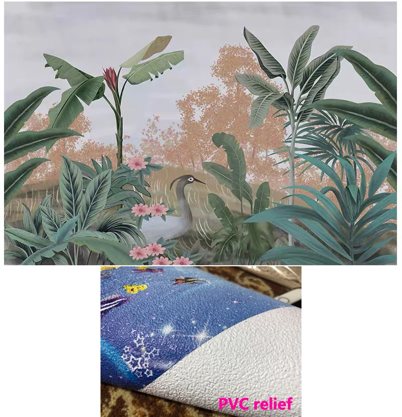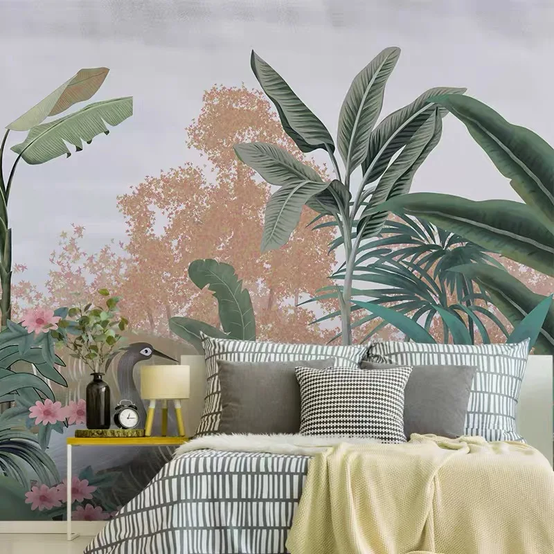 Большие 3d обои Bacaz с тропическими листьями банана, настенные 3d обои в скандинавском стиле, фламинго, тропический лес, настенные бумажные фрески, домашний декор