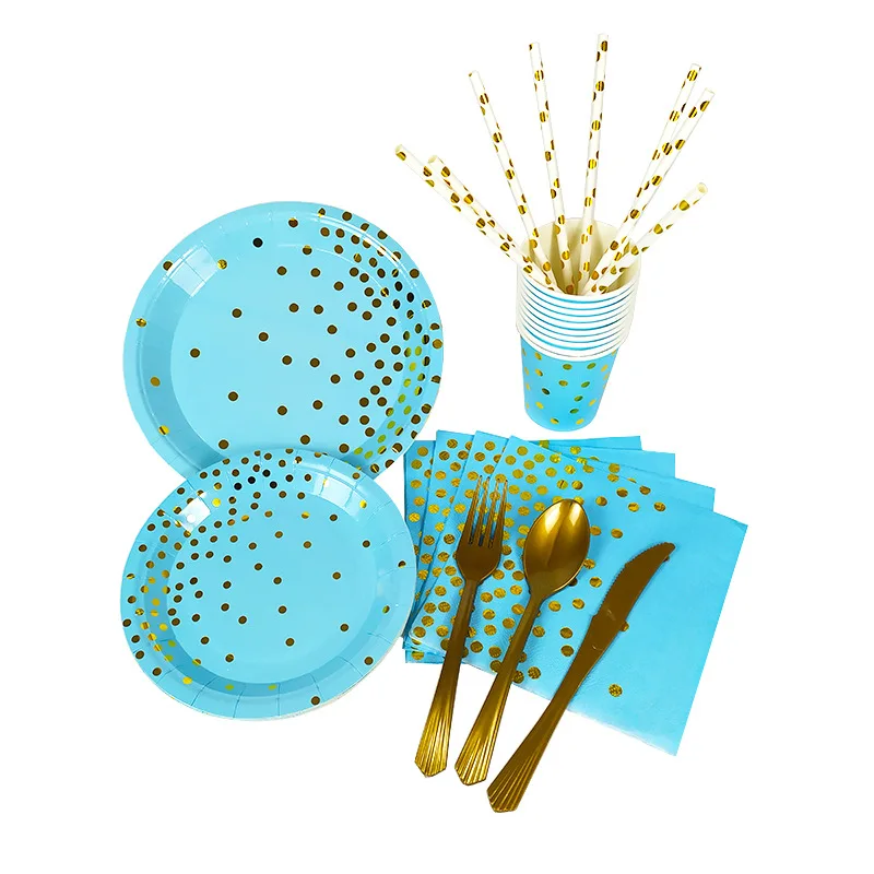 Синий золотой вечерние набор одноразовой посуды бумажные стаканчики...