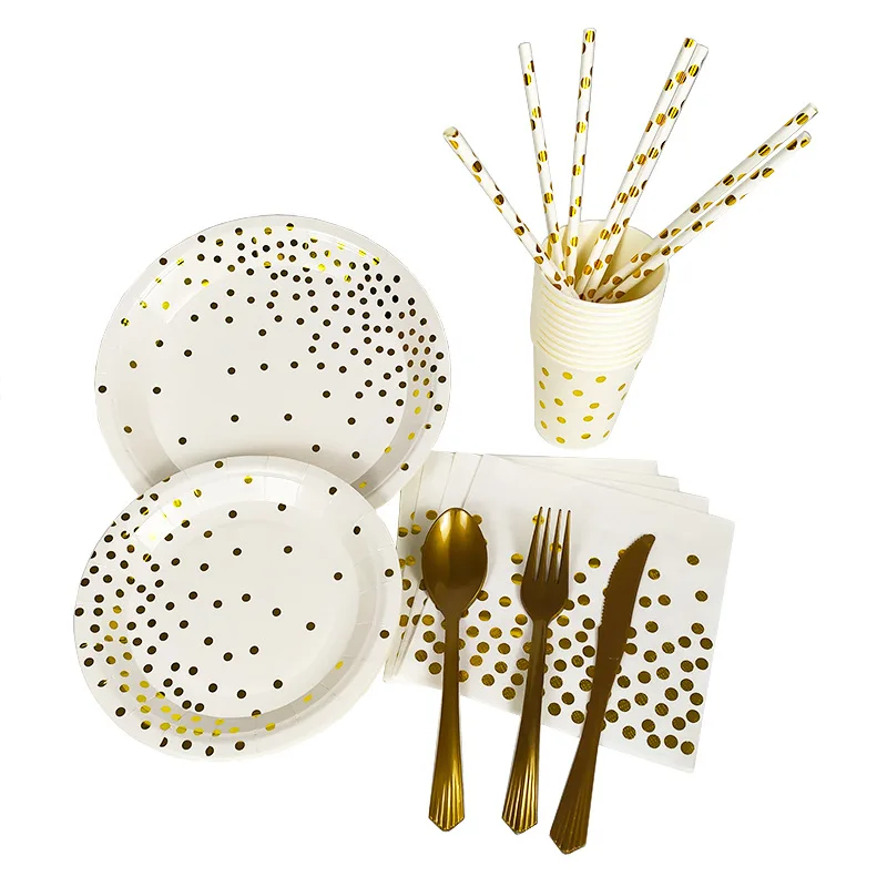Золотые вечерние набор одноразовой посуды бумажные стаканчики и тар...