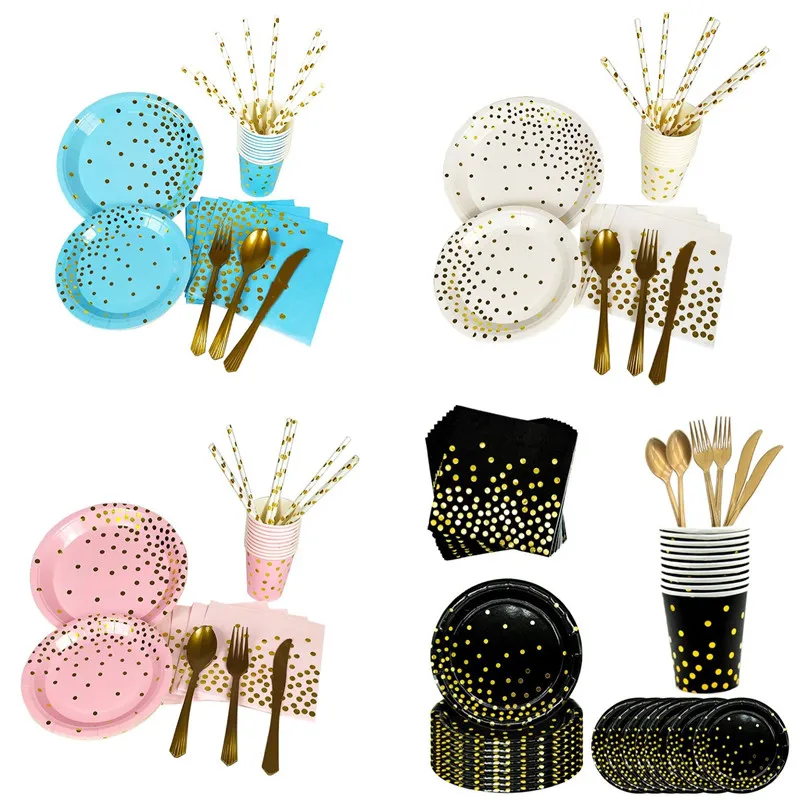 Бронзовые черные розовые в Горошек тематические одноразовые бумажные чашки для взрослых на день рождения свадьбу бумажные тарелки салфетки набор посуды