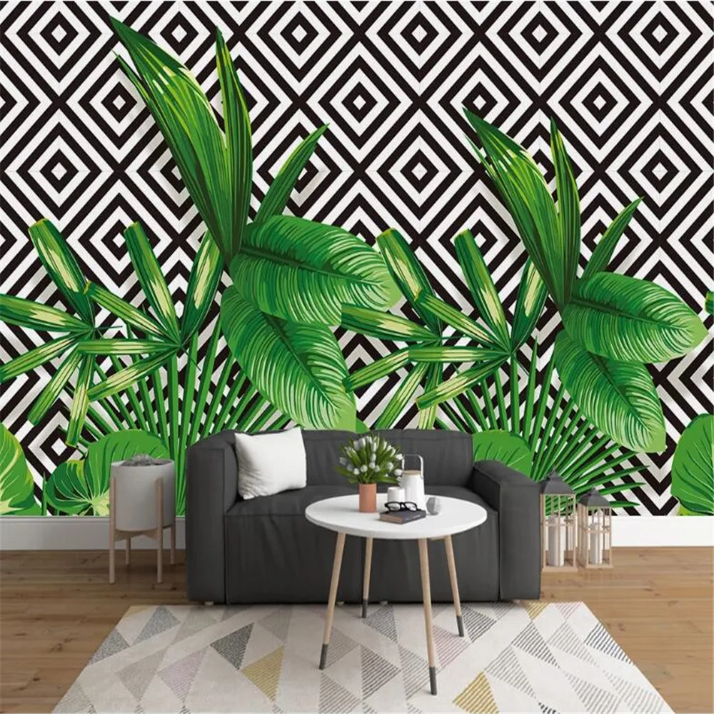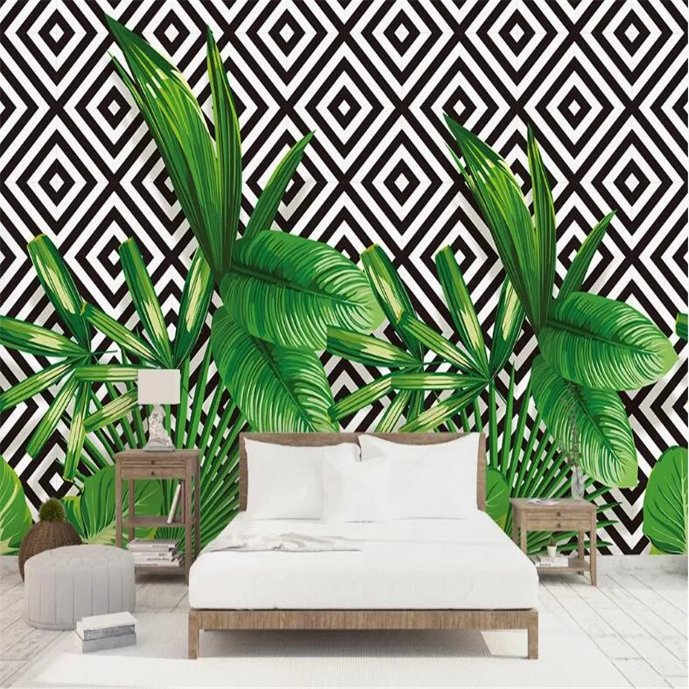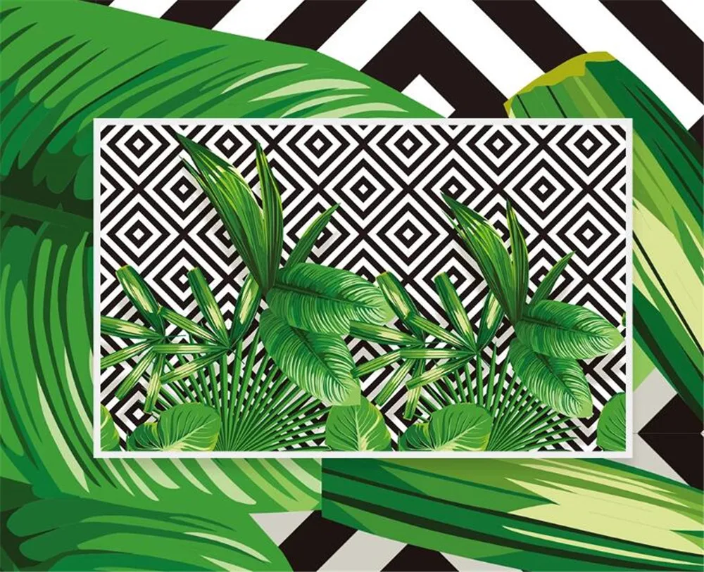 3D обои современные стерео зеленые листья растения геометрическая м...