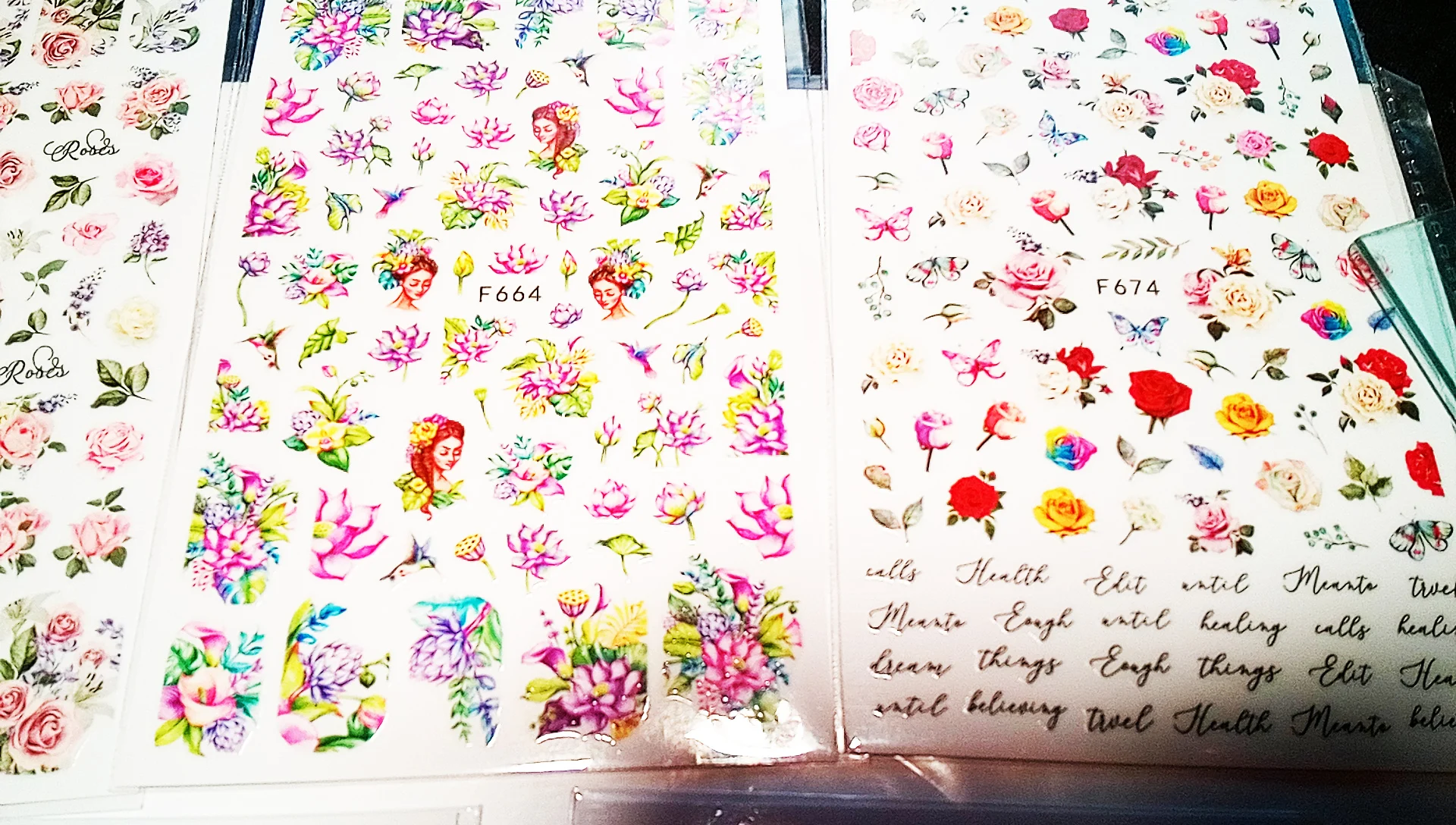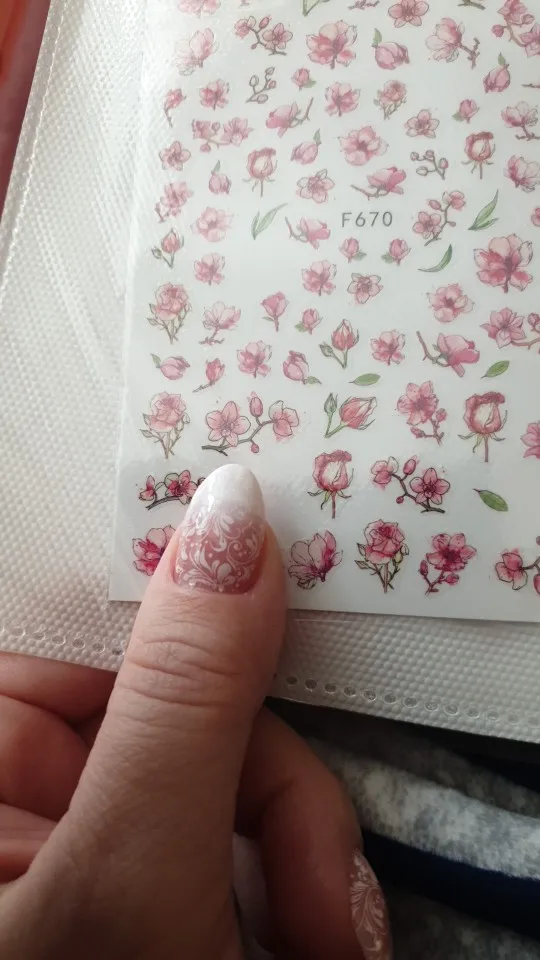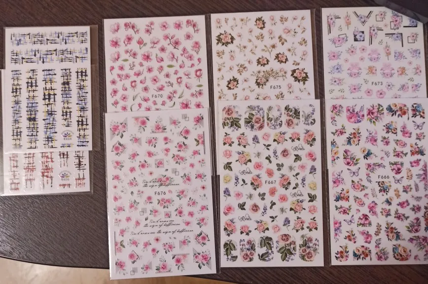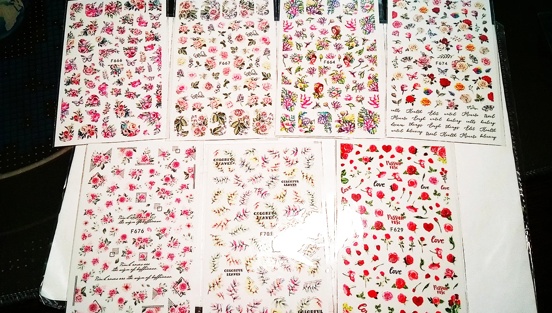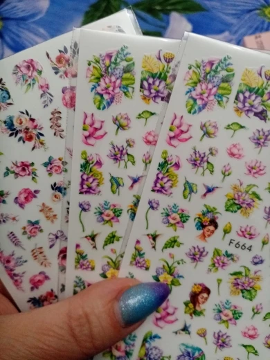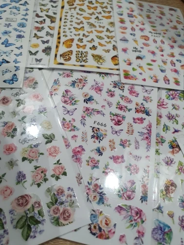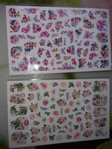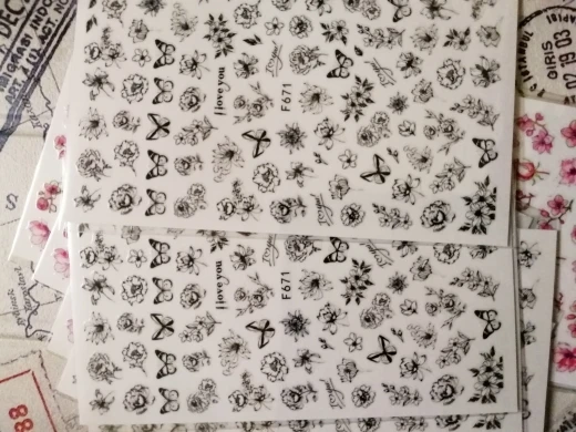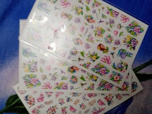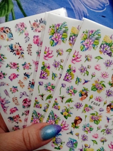 Очень хорошие наклейки, как на фото,нежные, но не блеклые, хорошая прорисовка, читаемые, очень тонкие, хорошо приклеиваются, не топорщатся на ноготке. Проблем вообще не возникло, рада, что заказала! И в МО пришли мега быстро!! Недели за две!!