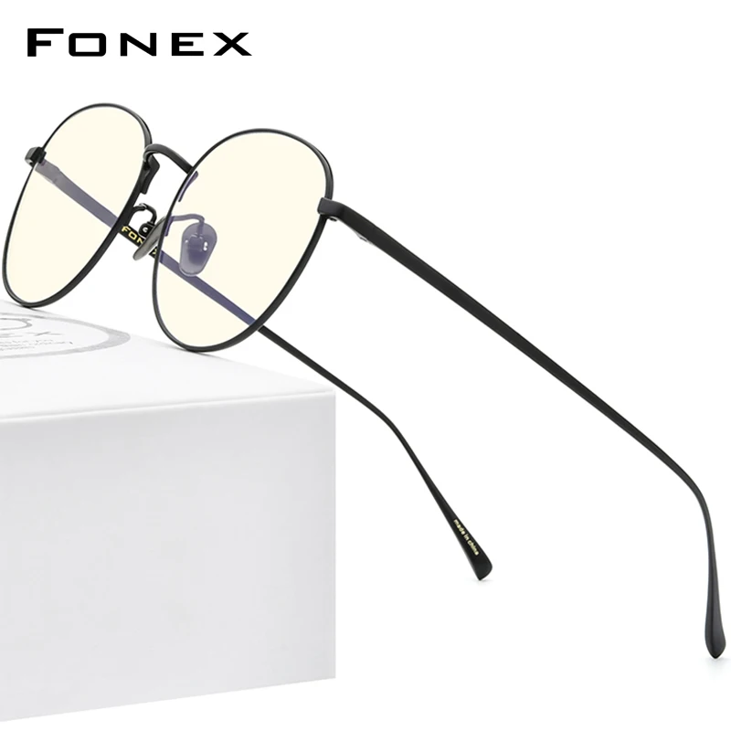 FONEX Очки из чистого титана с защитой от сисветильник для женщин и мужчин, овальные ретро очки, новинка 2020, винтажные оптические очки 30015