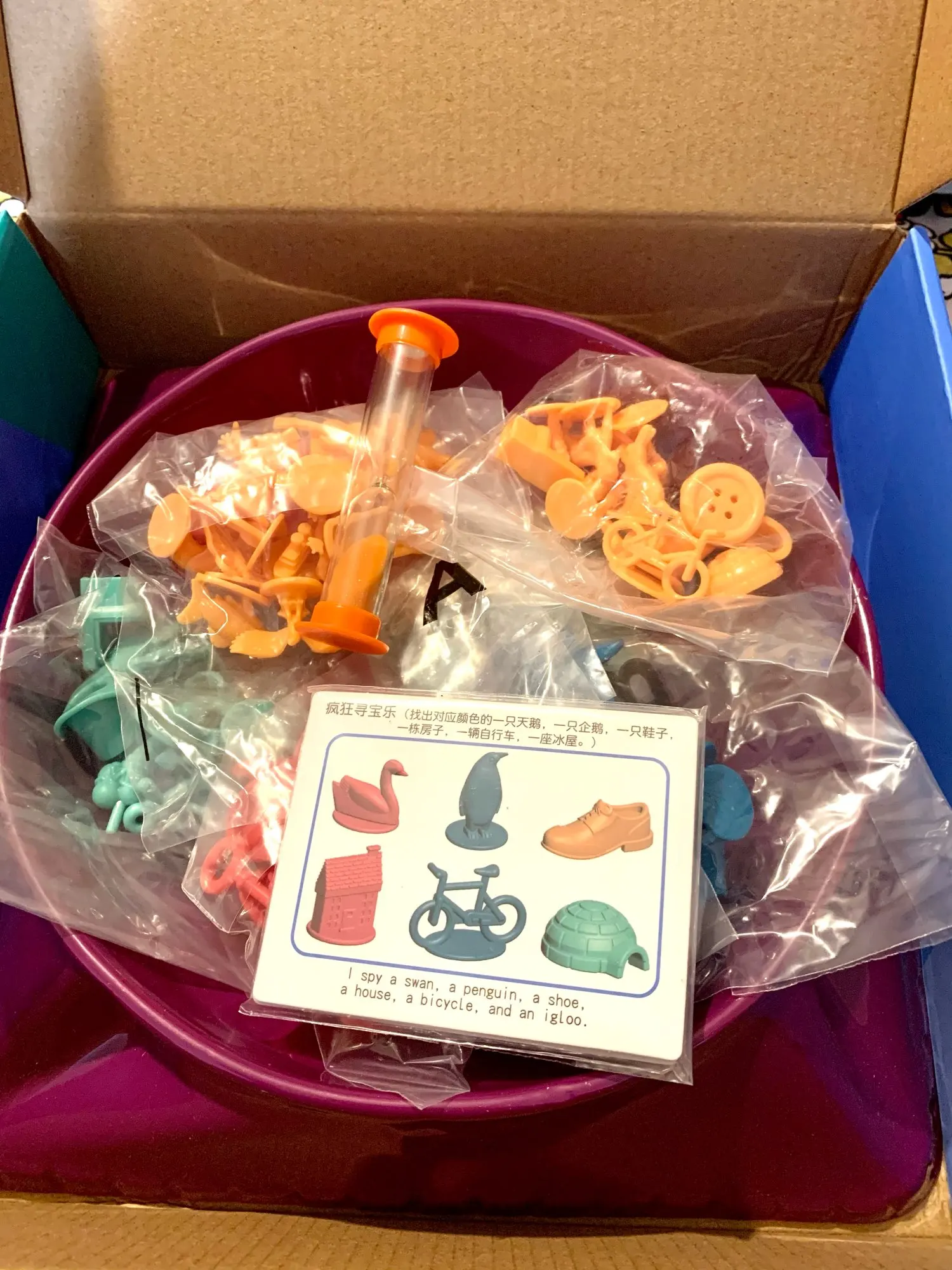 Мы с детьми в восторге. Огромная тарелка с кучей разноцветных деталек привлекает детей, с удовольствием ковыряются в ней и ищут нужные фигурки. Отлично развивает моторику и сенсорику, а также внимание. Посылка в пятёрочку пришла быстро. Рекомендую.