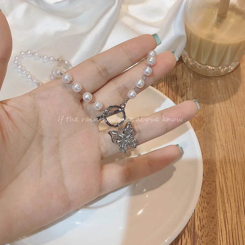 Чокер в Корейском стиле Женский, милое ожерелье-бабочка, цепь из бусин, массивный кулон, женский воротник, Ювелирное Украшение с жемчугом, 2020