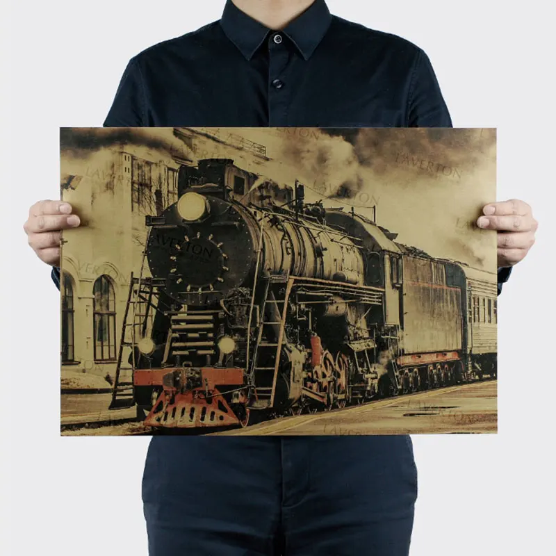 Винтажный постер AIMEER с паровым поездомНостальгический ретро постер из крафт-бумаги для украшения дома, кафе, бара, сердечник 51x36 см