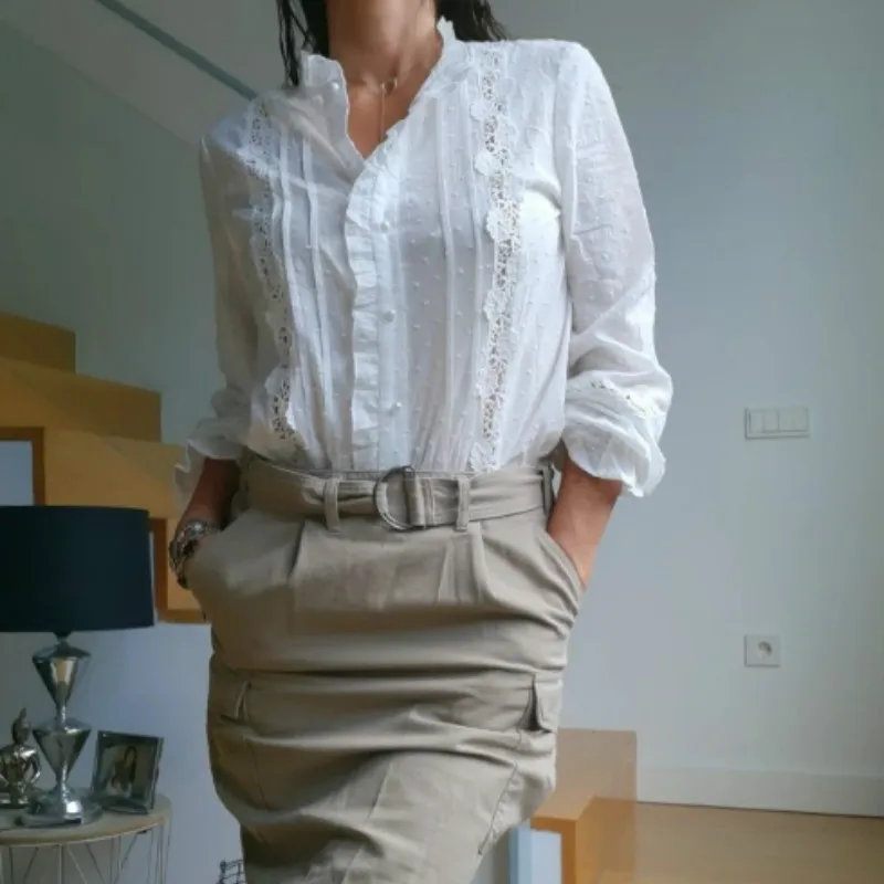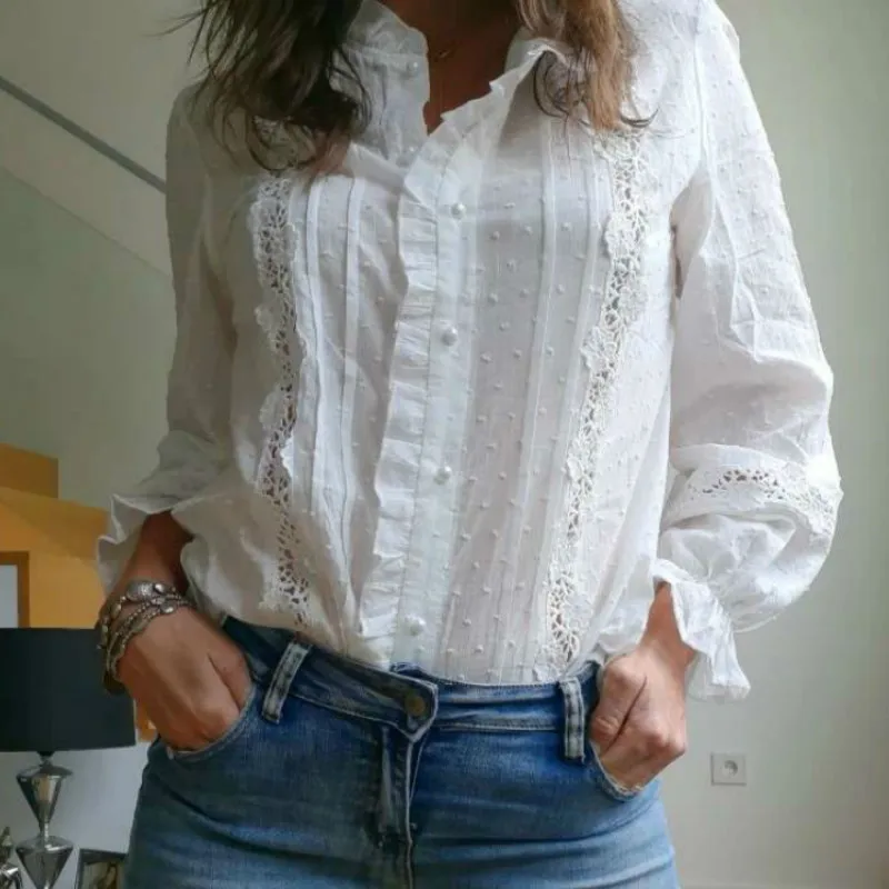 Женская блузка с длинным рукавом TEELYNN, винтажная белая хлопковая блузка с цветочным кружевом в стиле бохо, Повседневная офисная блузка для осени, 2021