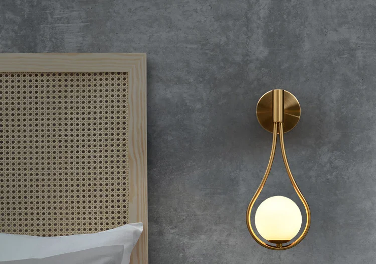 Современная стеклянная настенная лампа в скандинавском стиле, прикроватный абажур, латунный металлический декоративный светильник для спальни, прикроватного освещения для чтения, лестницы, коридора