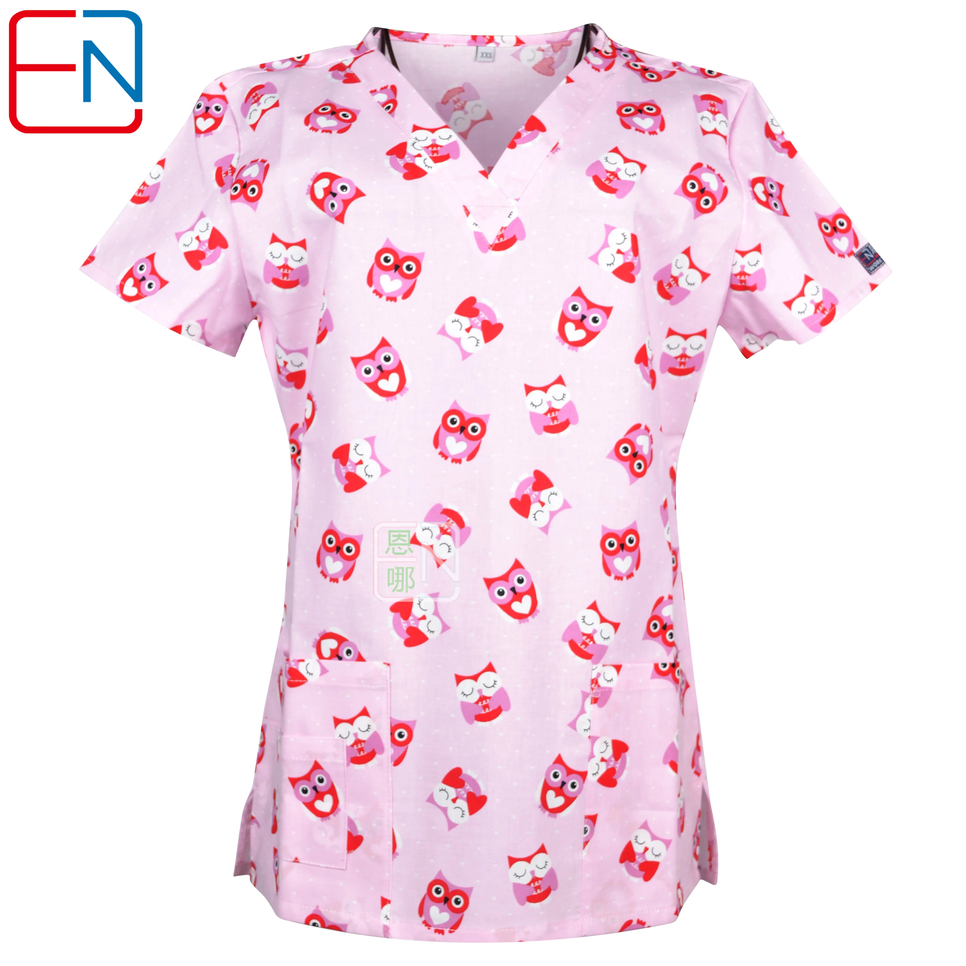 Hennar Для женщин скраб-топ с v-образным вырезом 100% из хлопчатобумажной ткани с принтом на каждый день униформа медсестры скраб-Топ s для Для женщин
