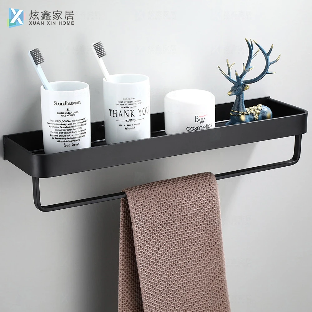 Настенный держатель для полотенец, алюминиевая Черная Вешалка для ванной комнаты, с крючком, домашний инструмент