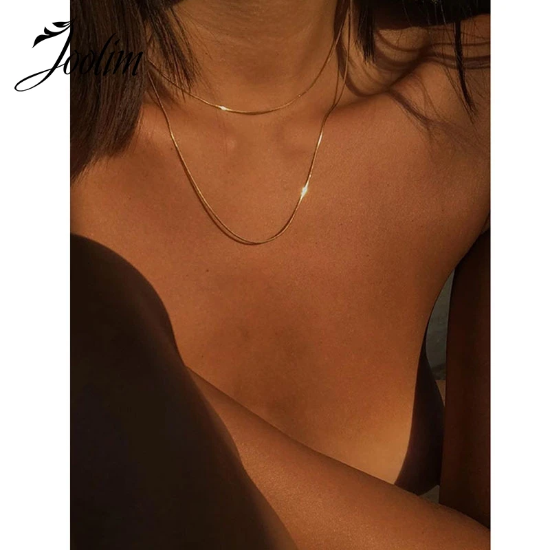 Ювелирные изделия из нержавеющей стали Joolim, оптовая продажа, 2 ряда, змеиная цепочка, женская уличная одежда, изысканное ожерелье