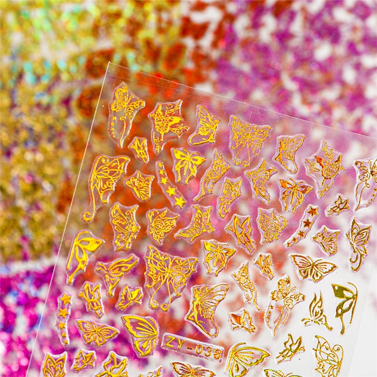 3D наклейки, цвет наклейки на ногти бабочки, золочение, лазер накле...