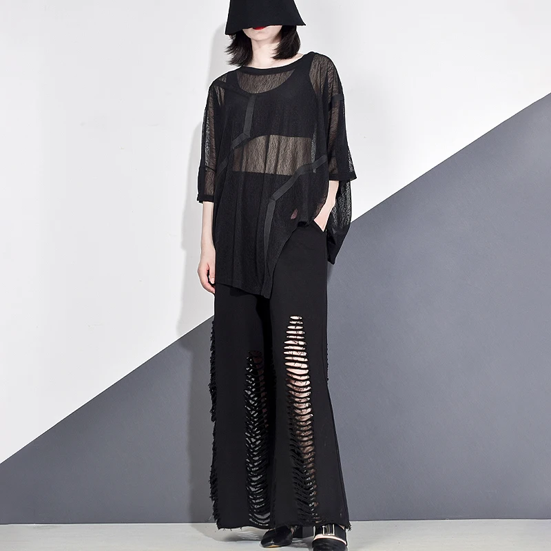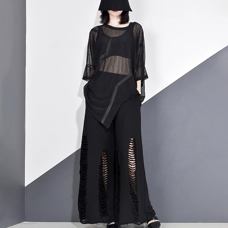 Футболка женская XITAO, с круглым вырезом и коротким рукавом, с лентами, в стиле пэчворк, на осень, 2020, DZL1184