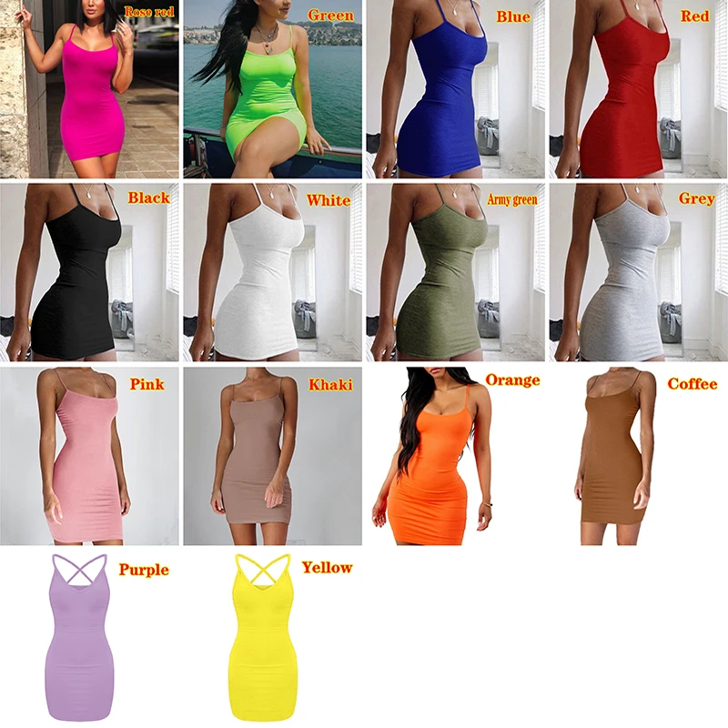 Популярное женское платье, Повседневные Вечерние облегающие платья мини без рукавов с лямкой на шее, женское однотонное летнее короткое платье, одежда для клубной вечеринки