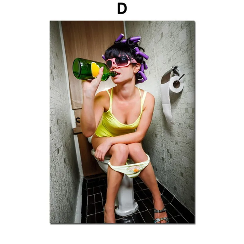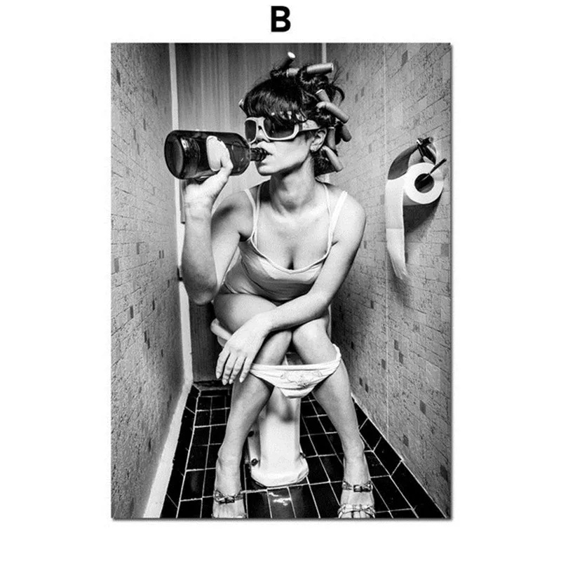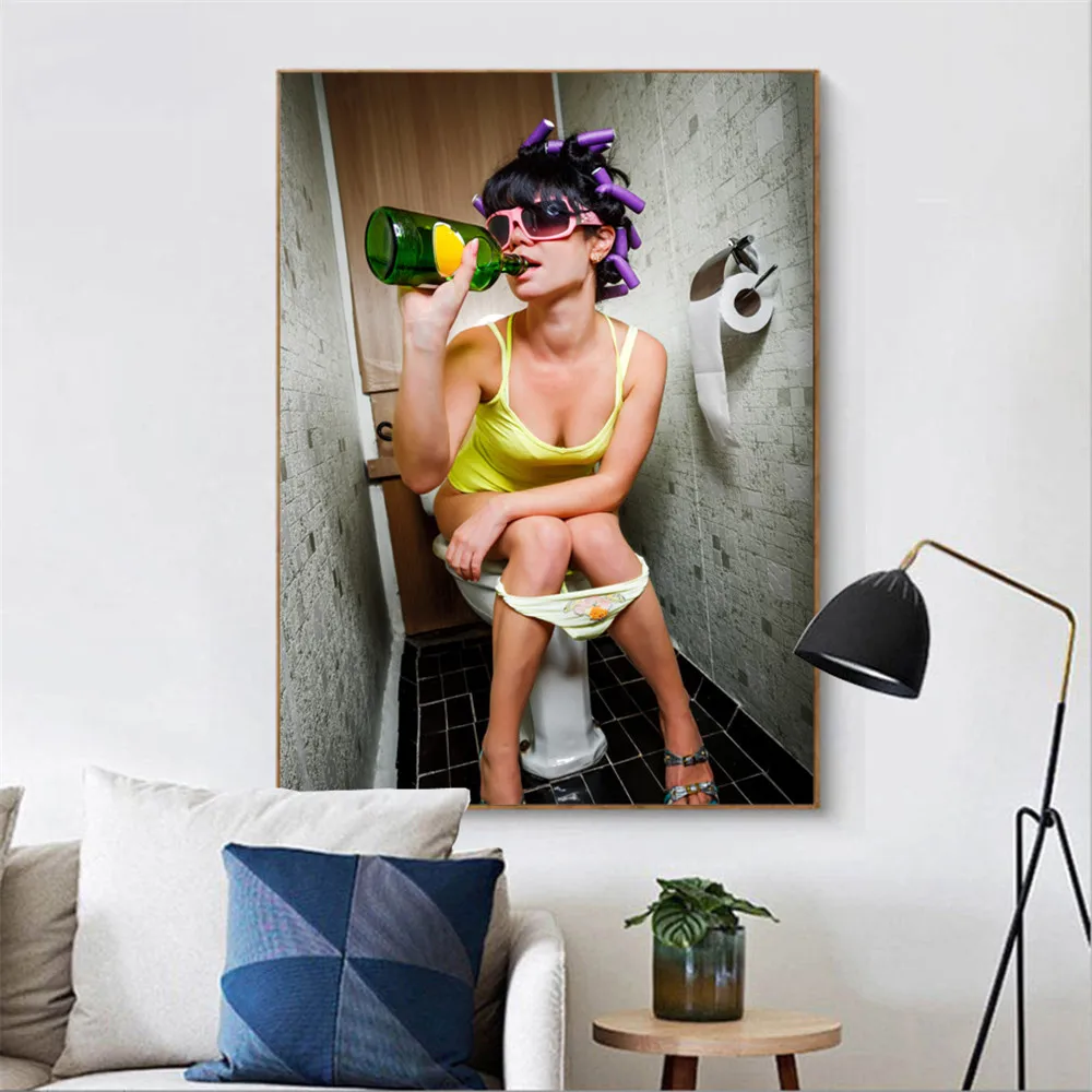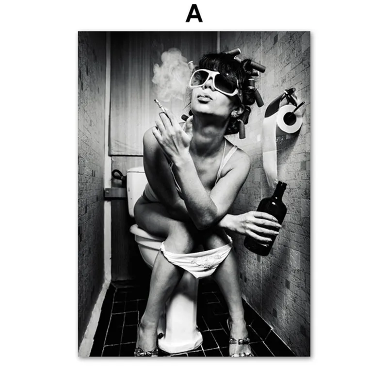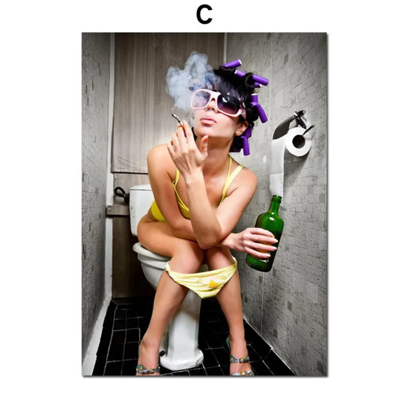 Модная Картина на холсте в стиле унитаза с изображением курительной девушки, скандинавские плакаты и принты, настенные картины для гостиной, бара, туалета, Декор