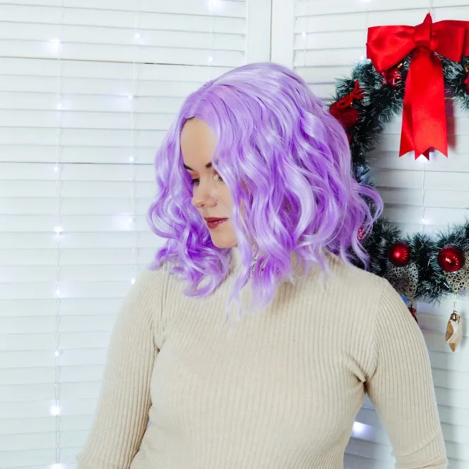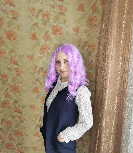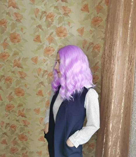Парик красивого сиреневого цвета. Регулируется снизу. Волосы из термоволокна. В комплекте идёт сеточка для волос. Достаточно густой. Волосы волнистые, красиво смотрятся. Длинна 41 см. У продавца есть выбор из 15 оттенков. Пробор выглядит естественно. Упаковано в специальную сеточку и зип пакет. Доставка была почтой России. Трек номер отслеживался. Посылка пришла за 25 дней.
