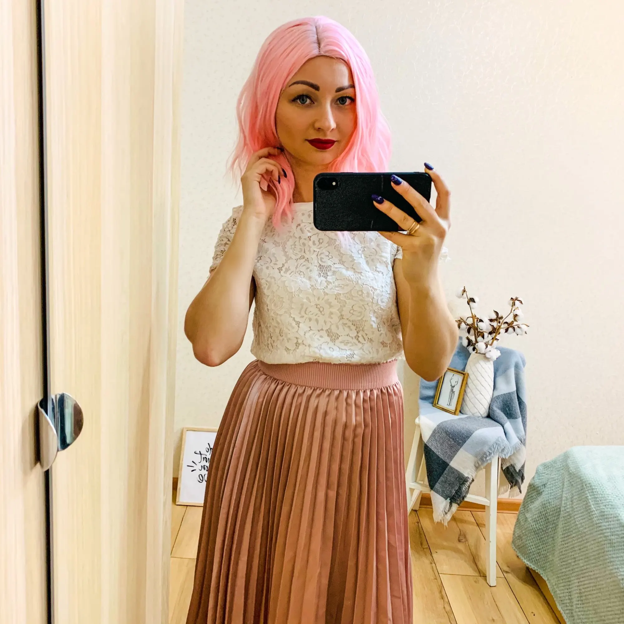 Парик яркий, красивый розовый цвет. Для фотосессий, вечеринок самое то. Мне понравился. Качество хорошее. Крепится надежно с помощью крючков. В комплекте шла шапочка и продавец еще положил в подарок наклейки. Спасибо. Доставка быстрая с отслеживанием.