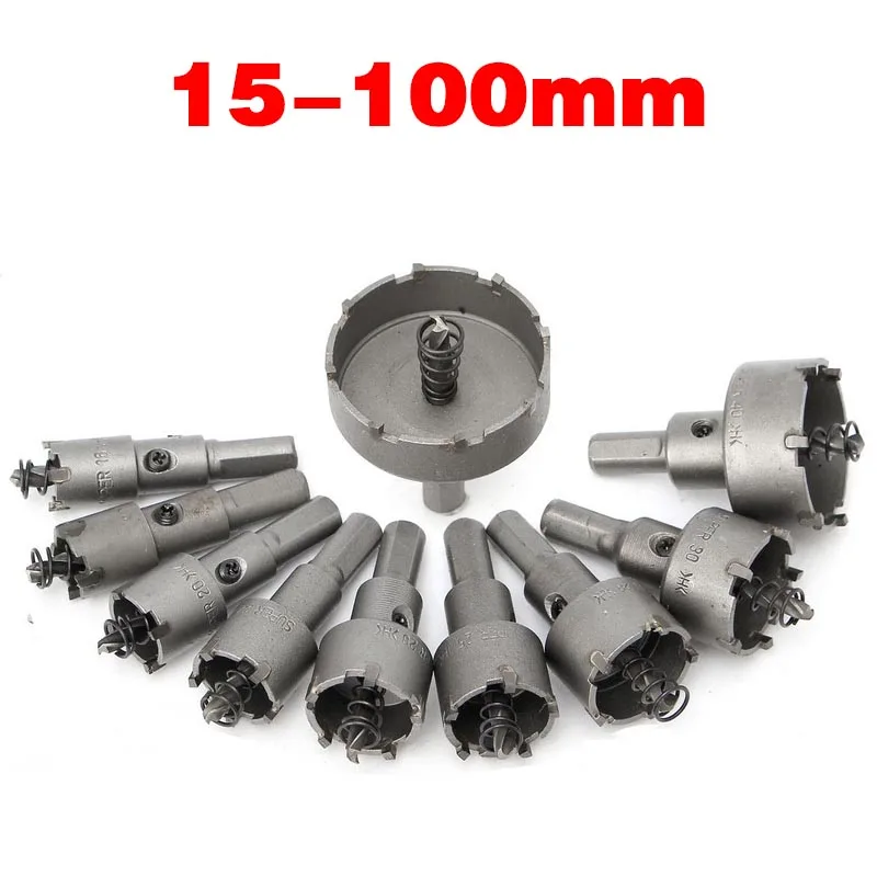 Твердосплавное сверло TCT с твердосплавным наконечником, кольцевая пила, резак для металлообработки, сверло для металлического сплава из нержавеющей стали 15-100 мм, 1 шт.