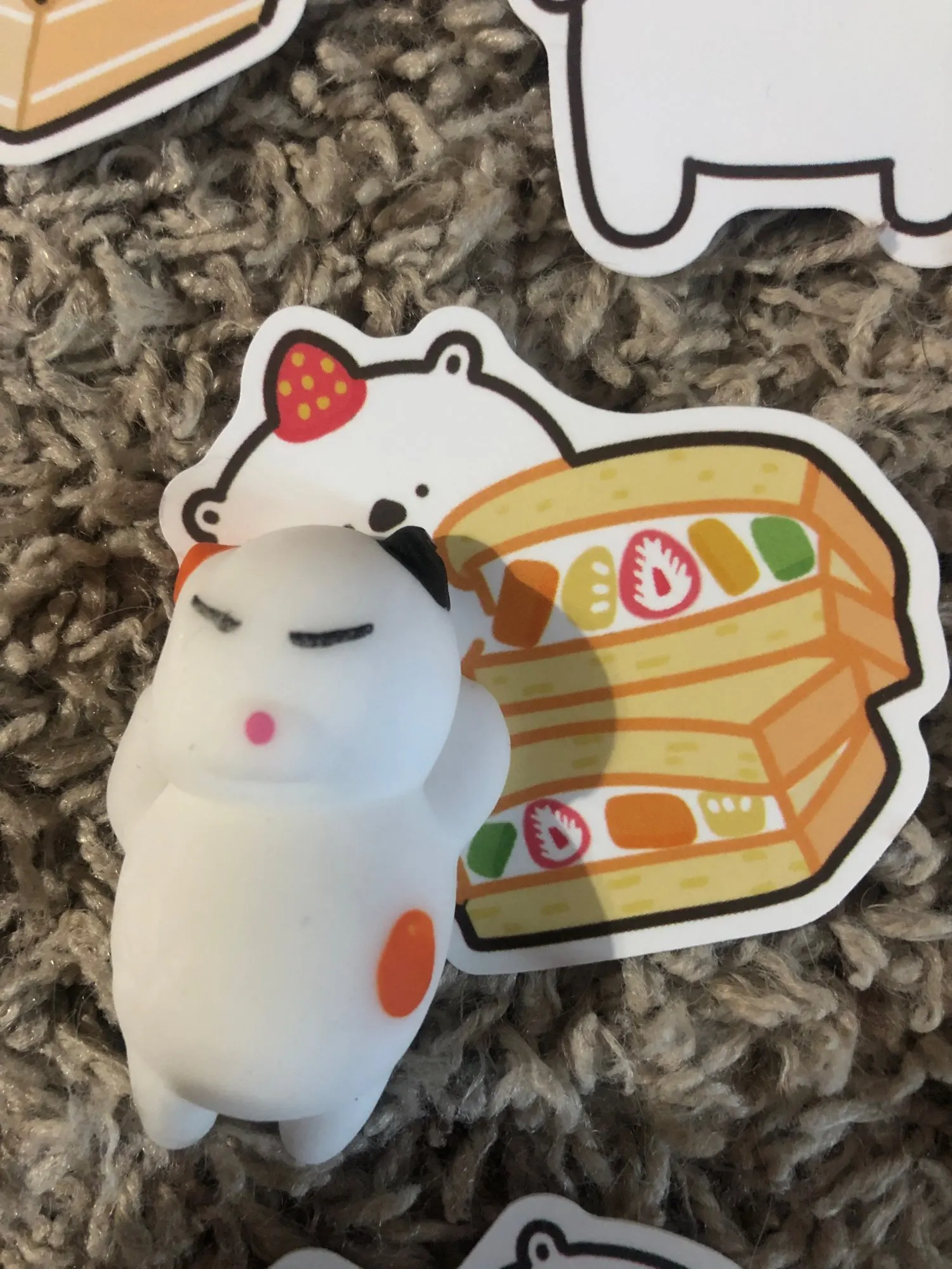 Рисунок: кошка.Сквиши, мягкие, медленно поднимаются.Цвет: серый цветок белый розовый